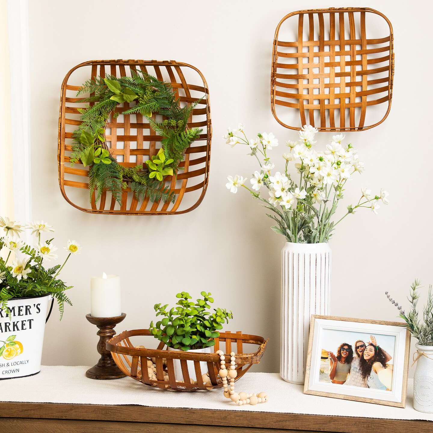 Northlight Square Lattice Tobacco Baskets - Brown - Set of 3