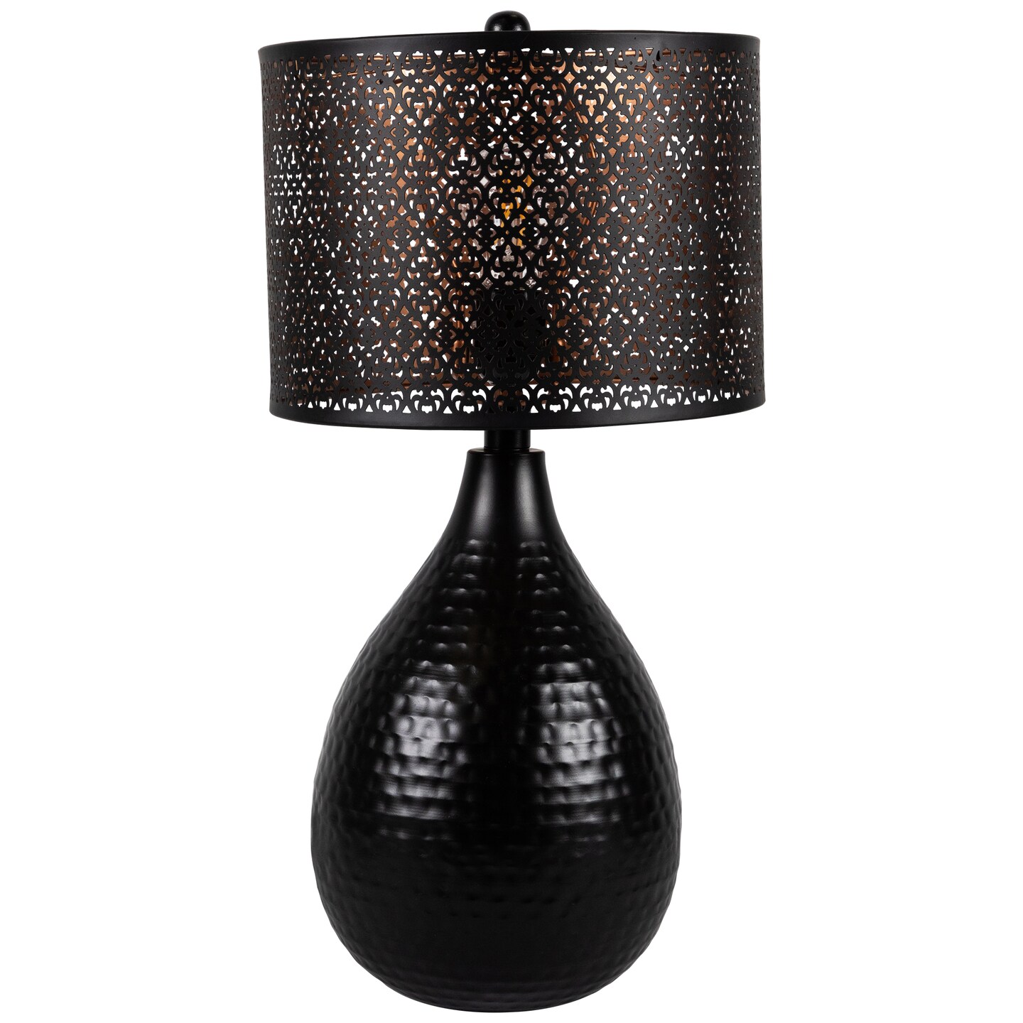Northlight Teardrop Iron Table Lamp with Laser-Cut Shade - 20" - Black and Copper