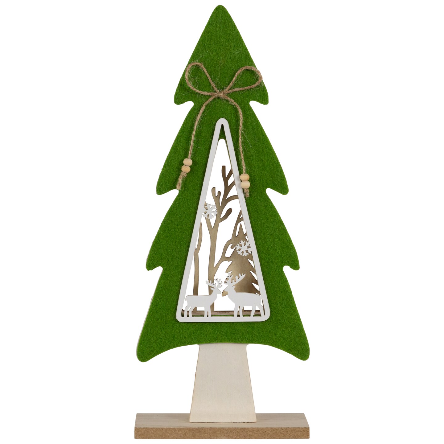 Northlight Woodland Tree with Reindeer Scene Wooden Christmas Decoration - 12"