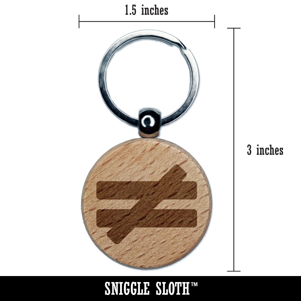 Not Equal Math Symbol Engraved Wood Round Keychain Tag Charm