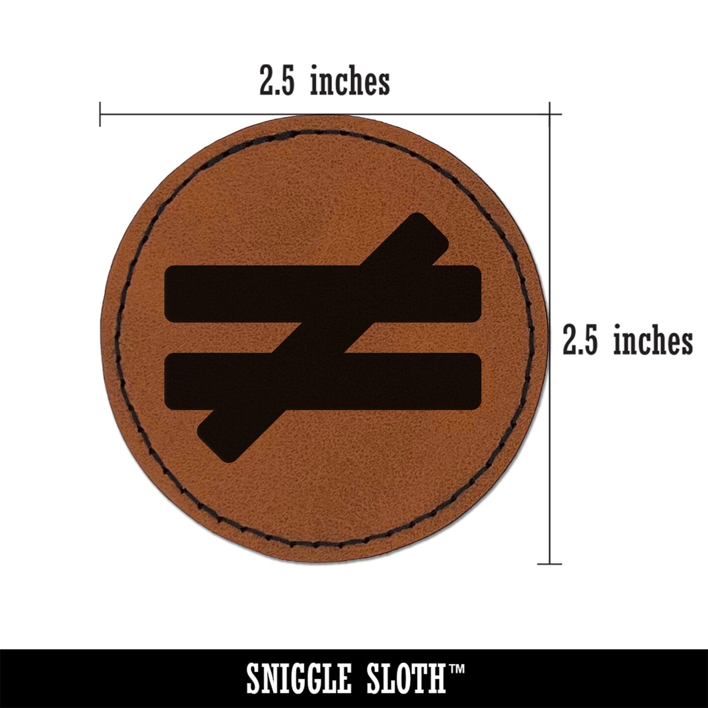 Not Equal Math Symbol Round Iron-On Engraved Faux Leather Patch Applique - 2.5"