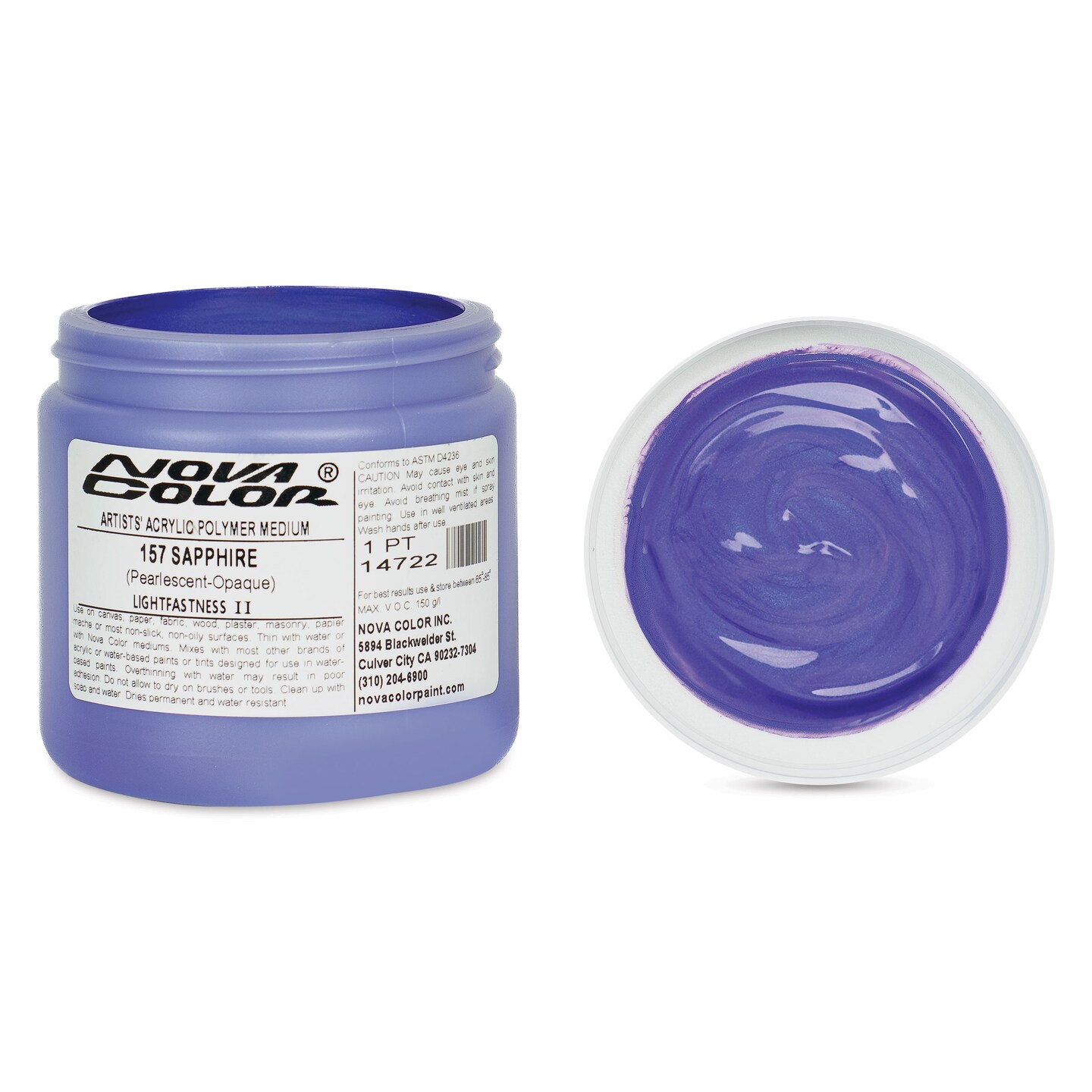 Nova Color Artists’ Acrylic Polymer Paint - Sapphire Pearl, 473 ml Jar