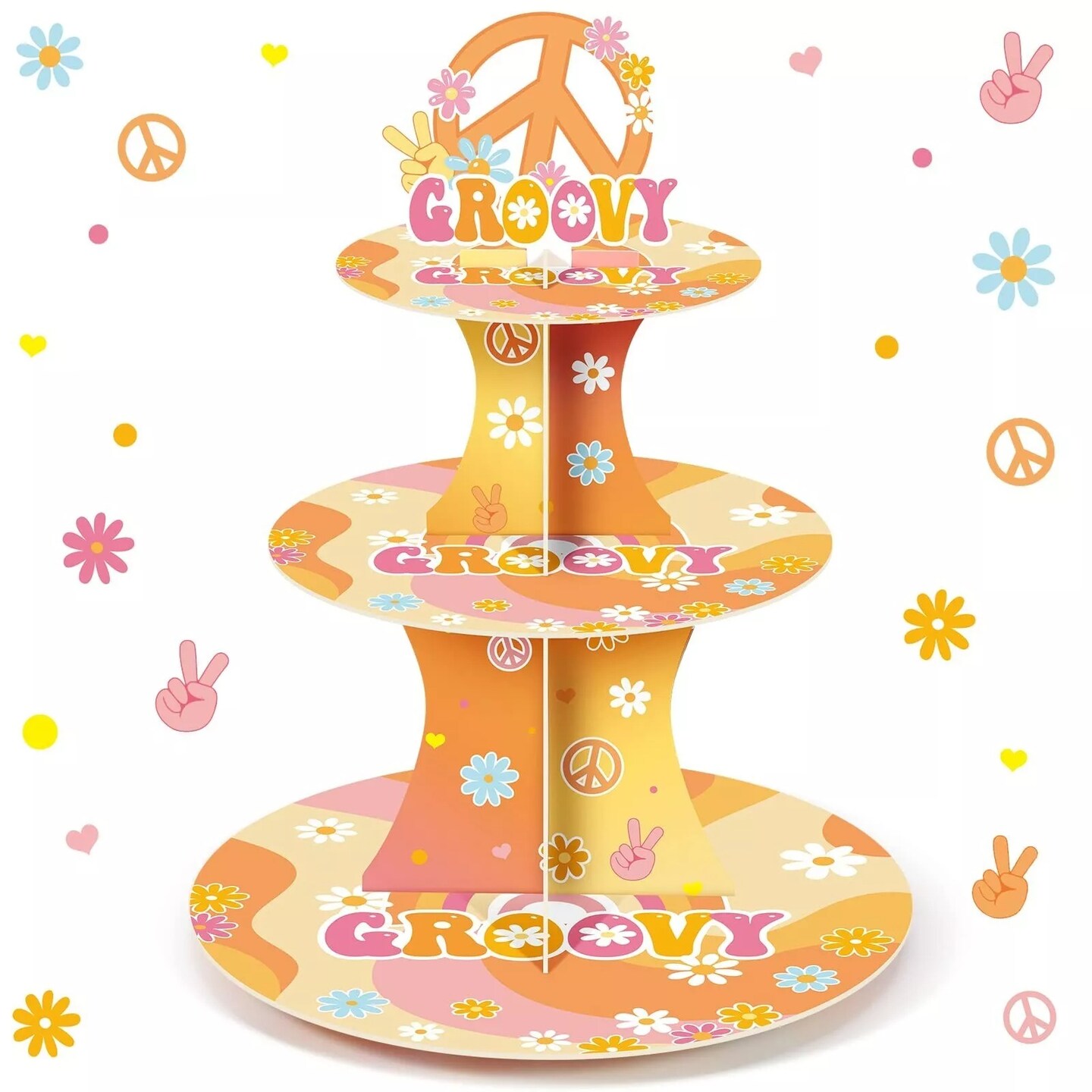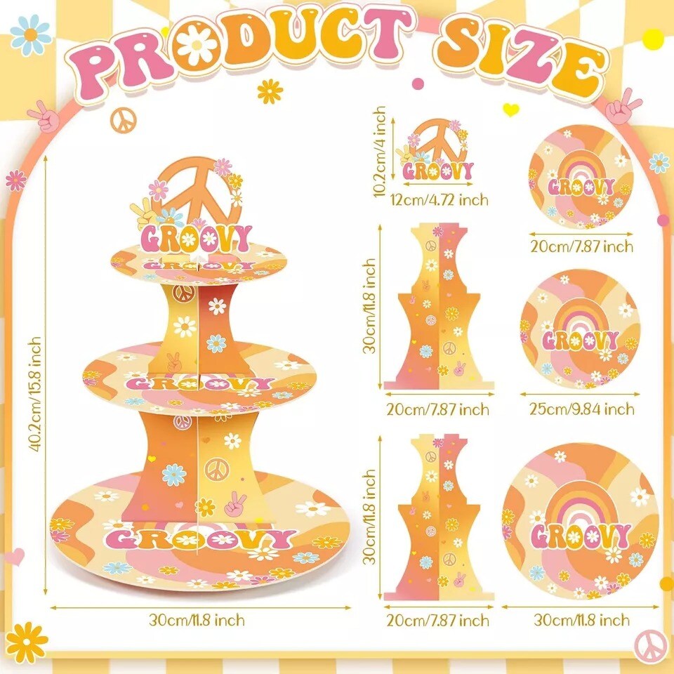 Nuenen 3 Tier Groovy Hippie Cupcake Stand Party Decorations