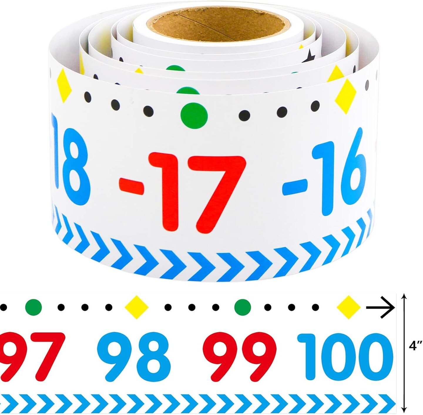 Number Line for Classroom Wall Number Line Bulletin Board Border -20 to 100 (Multicolor) 192" x 432"