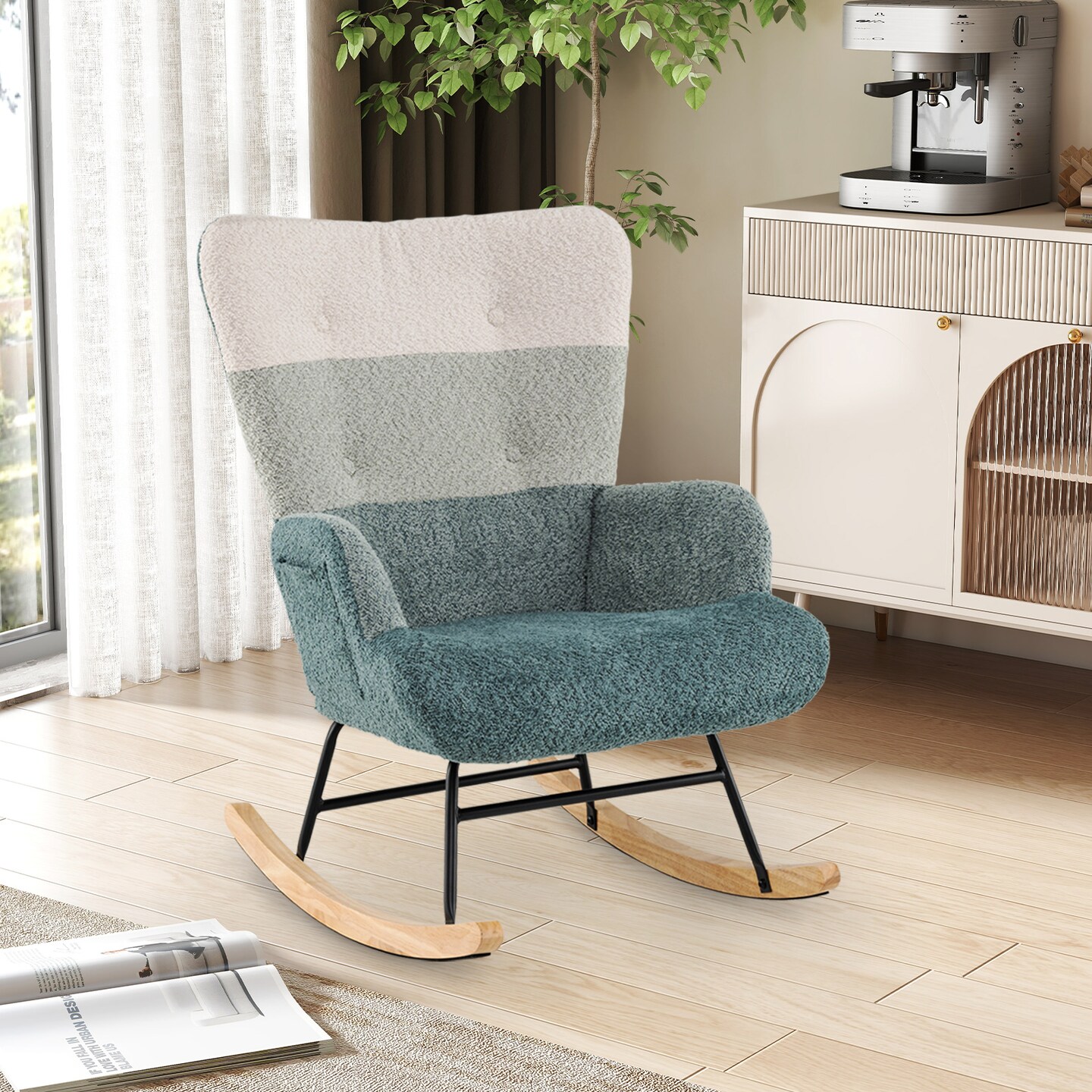 Nursery Rocker Chair with High Back and Comfortable Armrests