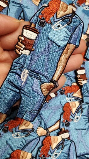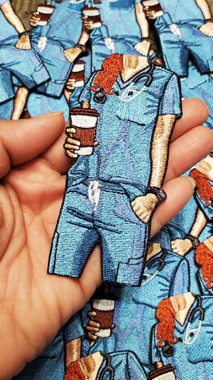 Nurses Care a’Latte (Caucasian Nurse), Embroidery, Iron-on Applique, Size 4" inches