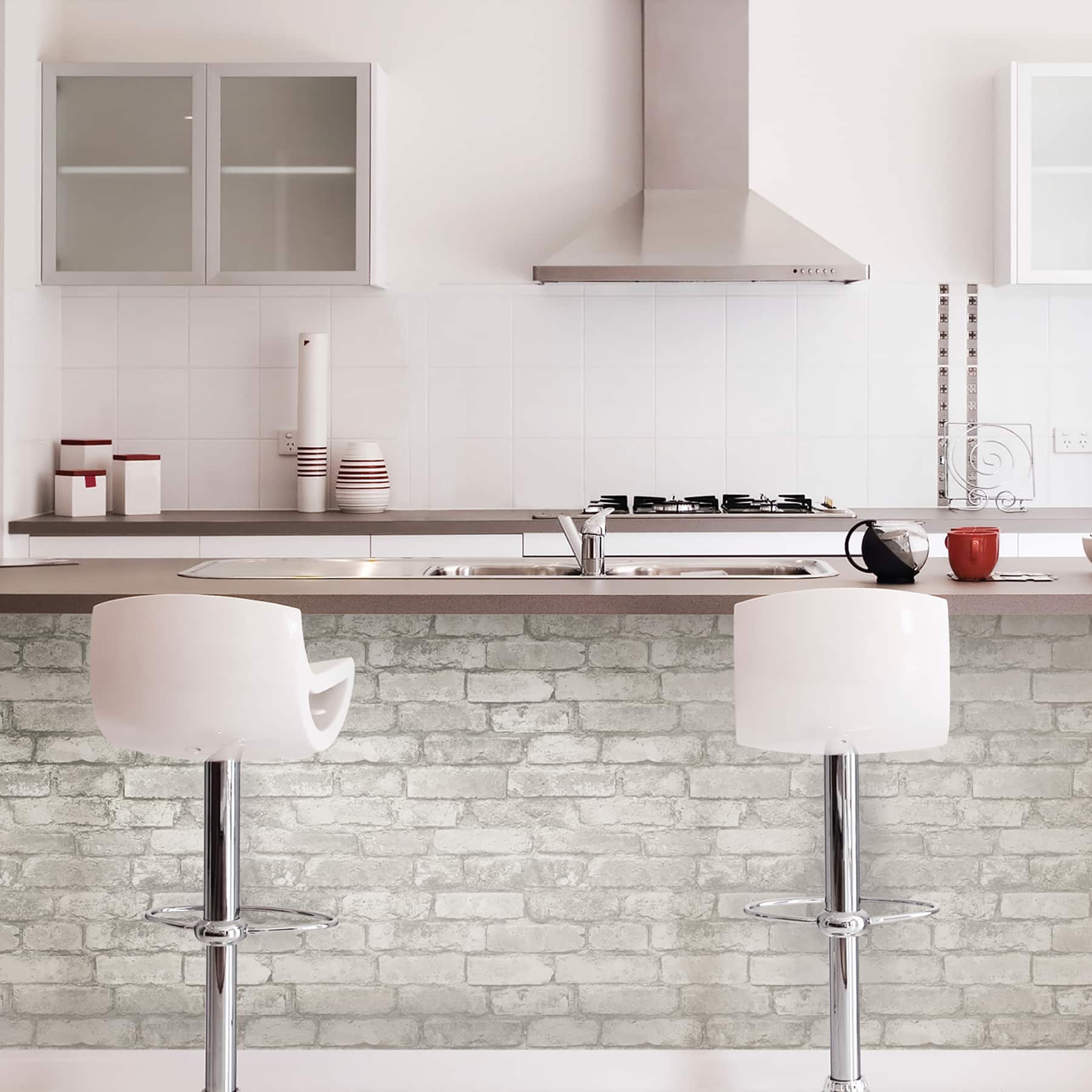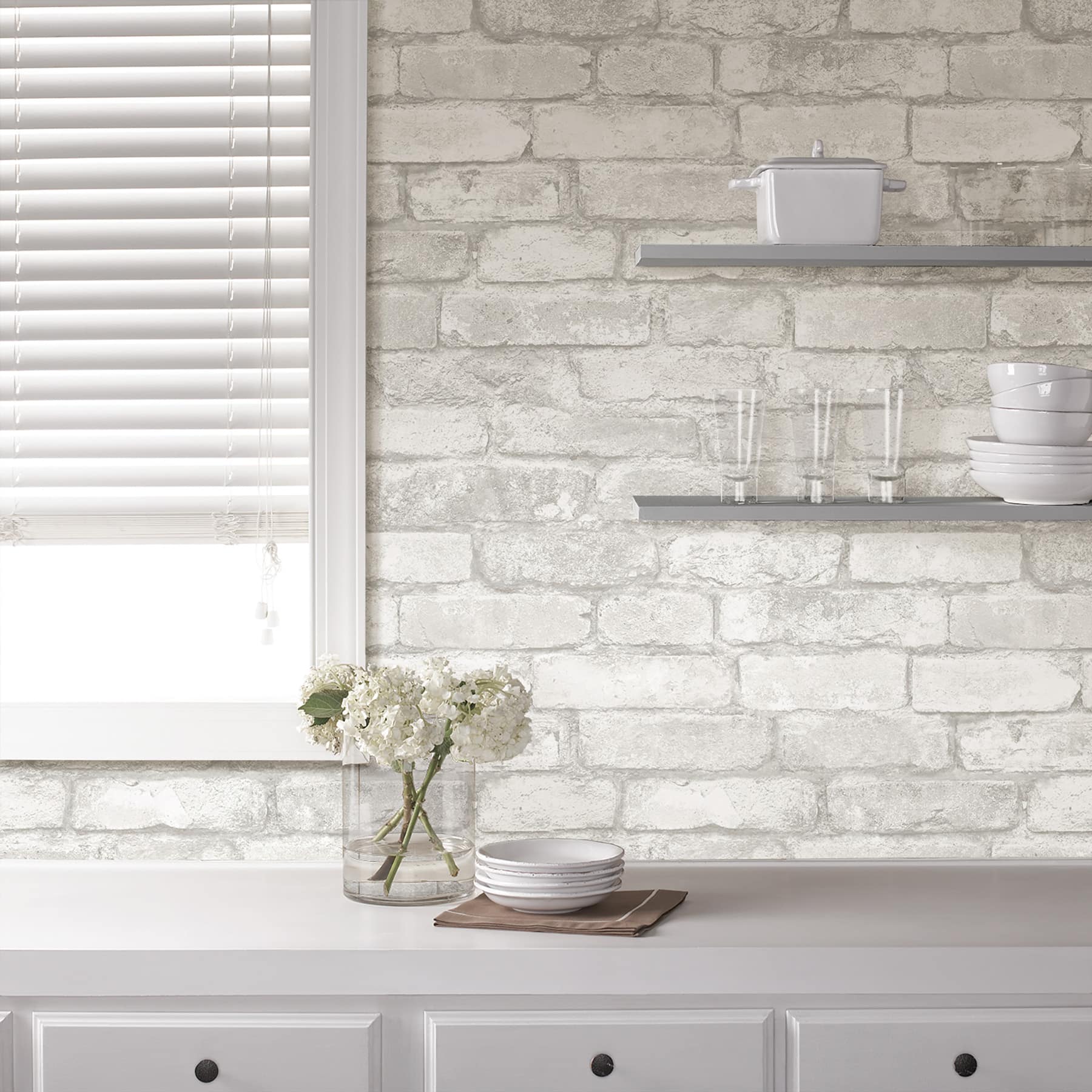 NuWallpaper Gray & White Brick Peel & Stick Wallpaper