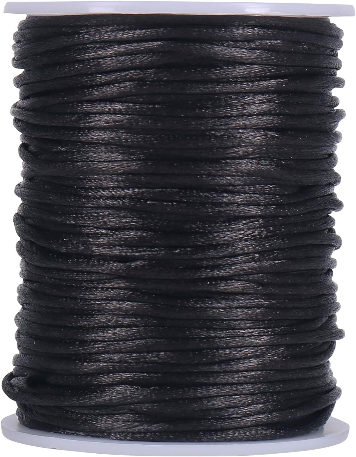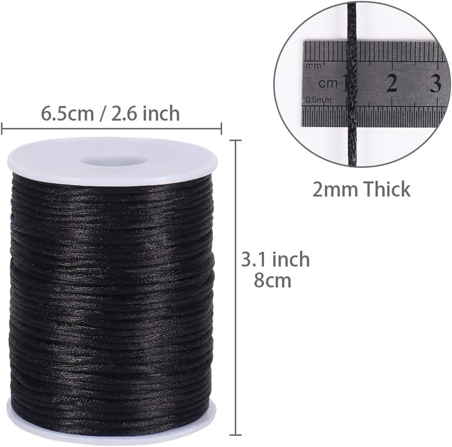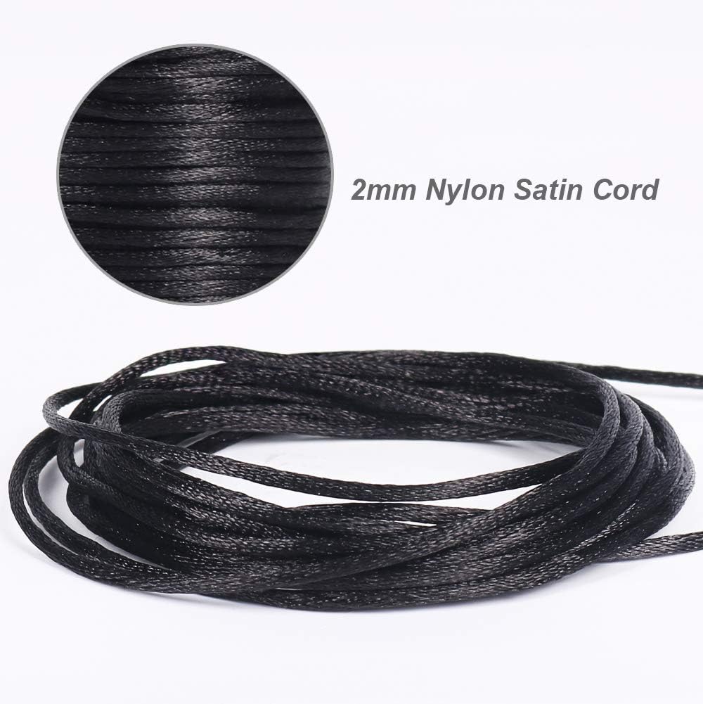 Nylon Satin Cord, 295 Feet 2mm Black Nylon String for Jewelry Making, Silky Rattail Cord for Bracelets, Necklaces, Macrame Keychains, Lanyards, Beading