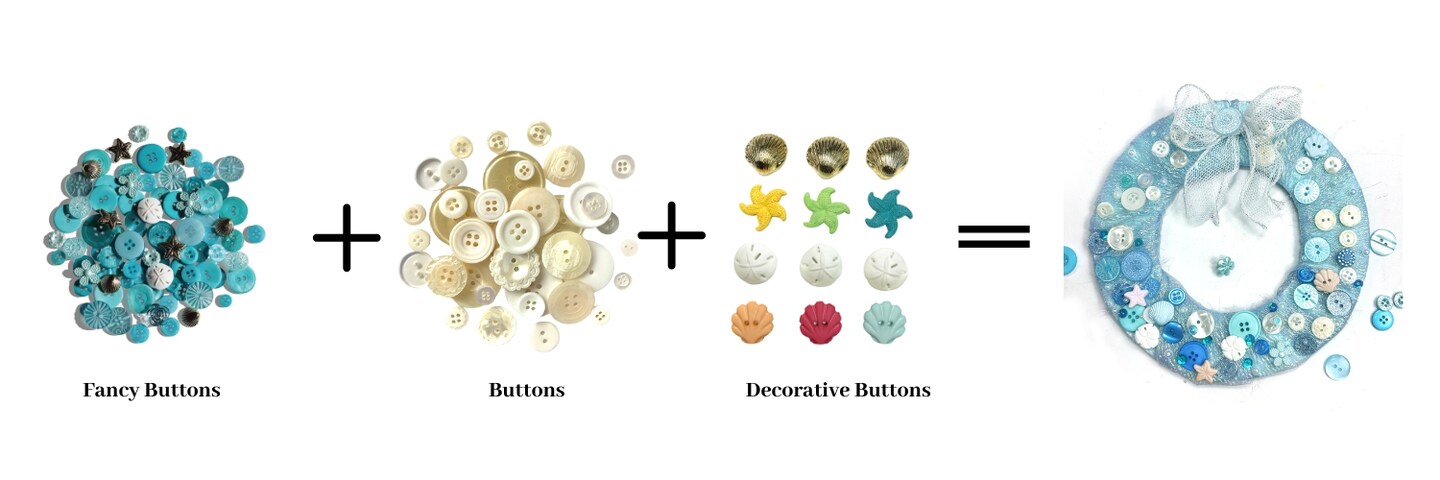 Ocean Blue Wreath Button Bundle – Nautical & Beach-Themed Buttons with Pearlized Accents – DIY Mini Wreath Craft Kit