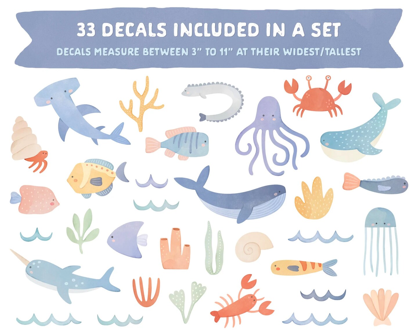 Ocean Wall Decals - Removable & Reusable Sea Life Wall Stickers for Kid's Rooms and Nurseries