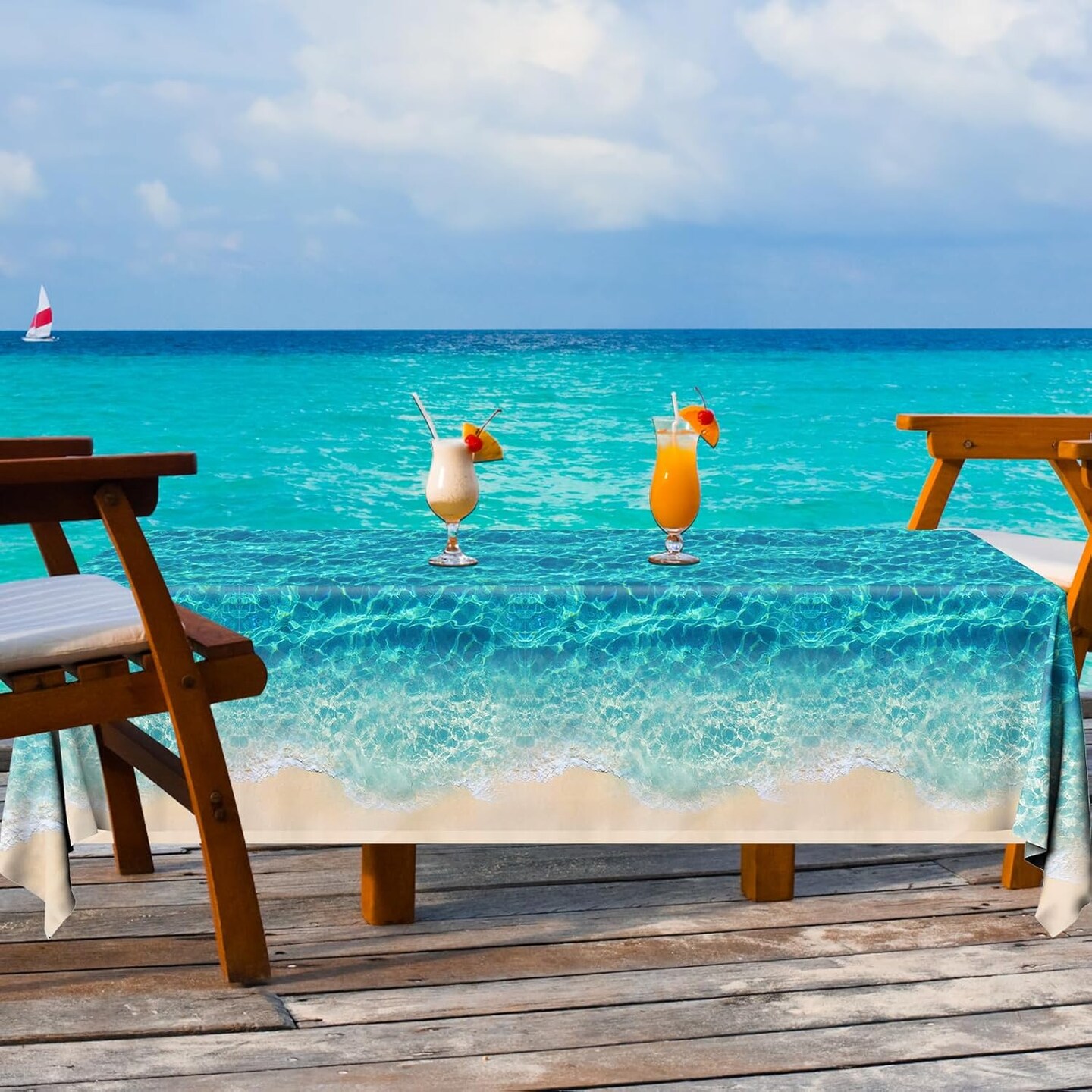 Ocean Waves Tablecloth, 3Pcs Summer Beach Pool Party Decorations Tablecloth (54X108inch)