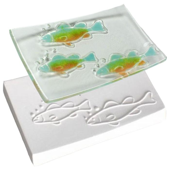 O.D.6”x 4 D.1"Fish Texture Soap Dish Slump Mold Glass Fusing