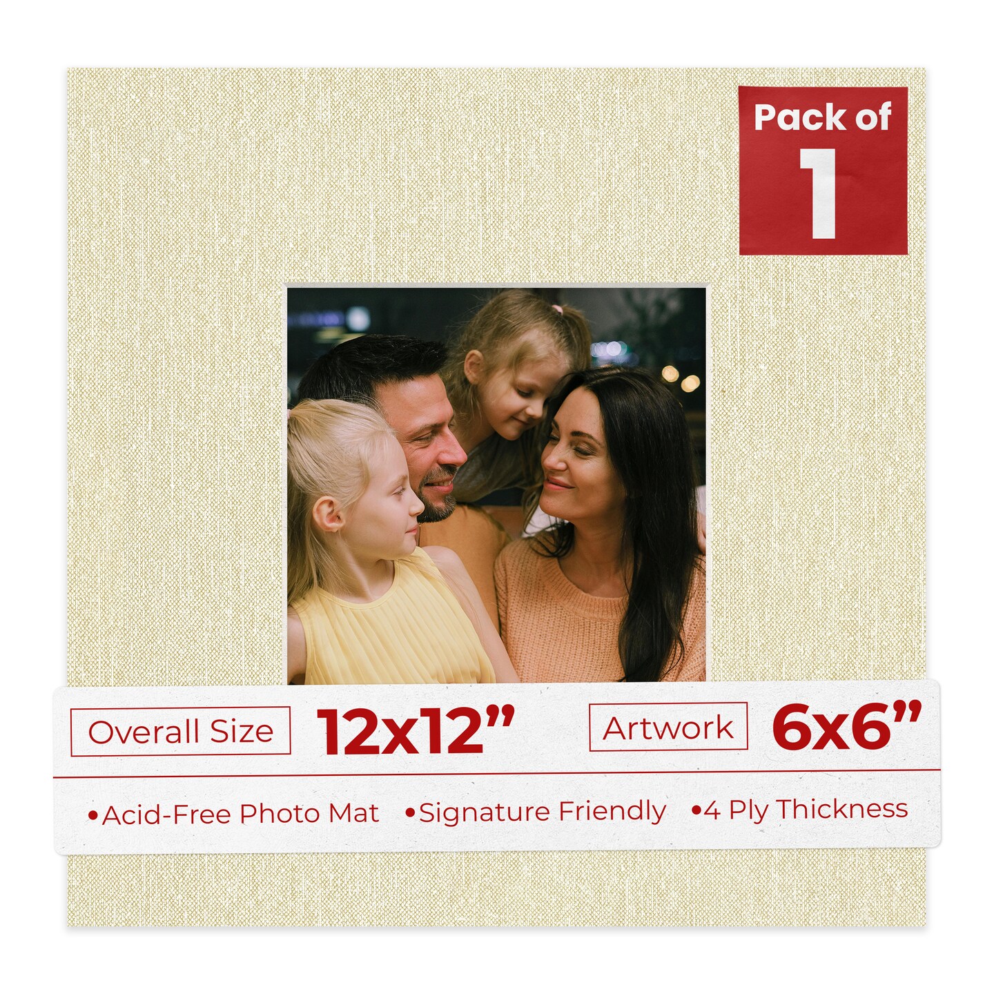 Off White Canvas Mat Board for 12x12 Frames - Fits 6x6 Photos