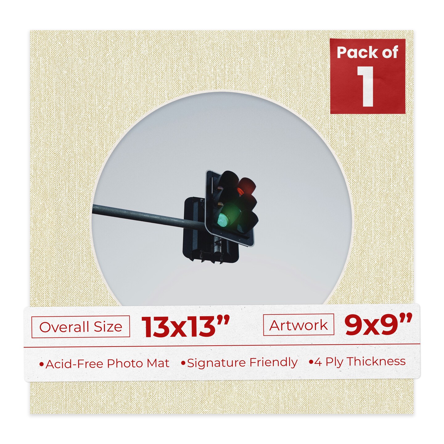 Off White Canvas Mat Board for 13x13 Frames - Circle Opening for 9x9 Photos