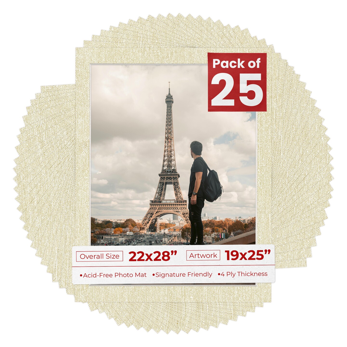 Off White Canvas Mat Board for 22x28 Frames - Fits 19x25 Photos