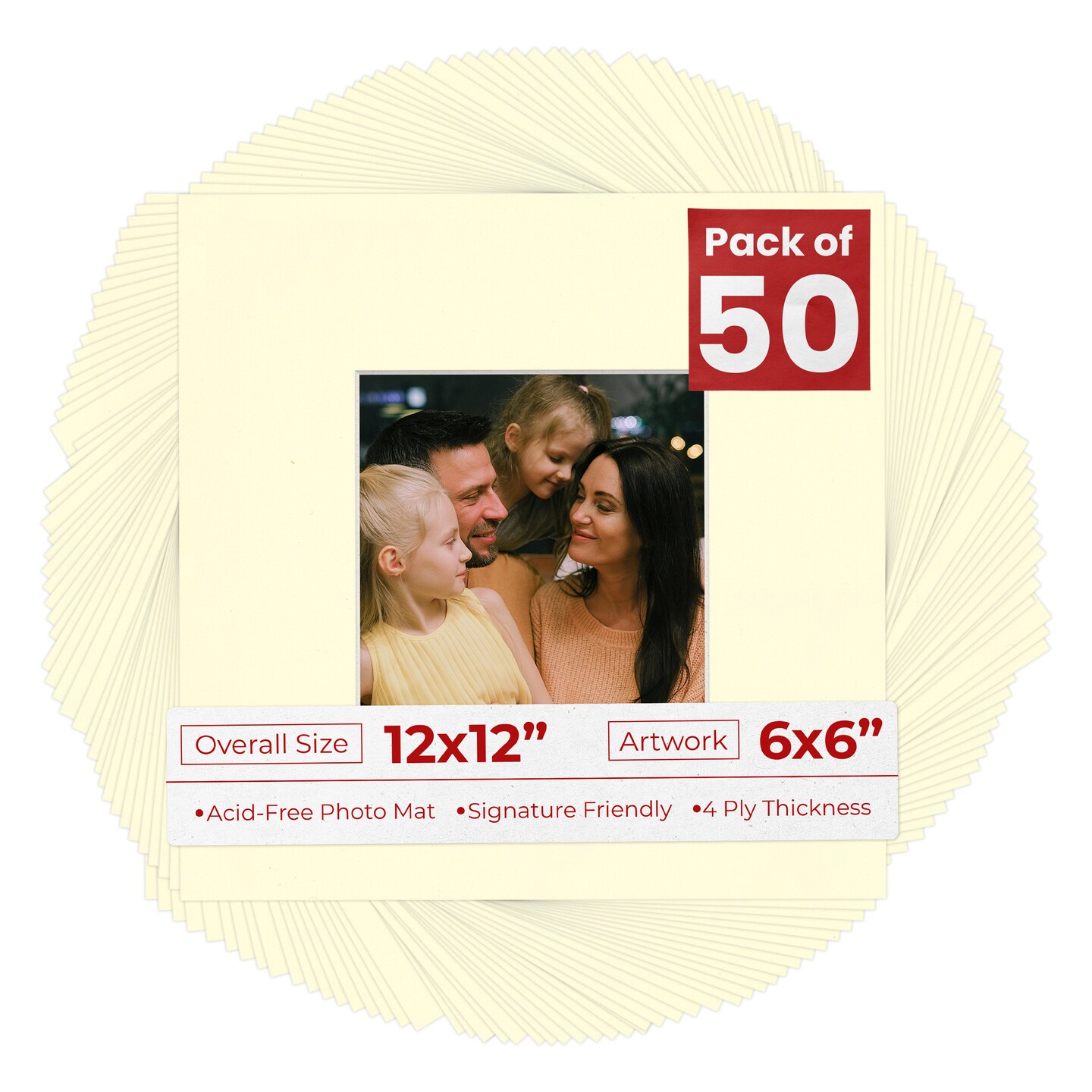 Off White Mat Board for 12x12 Frames - Fits 6x6 Photos