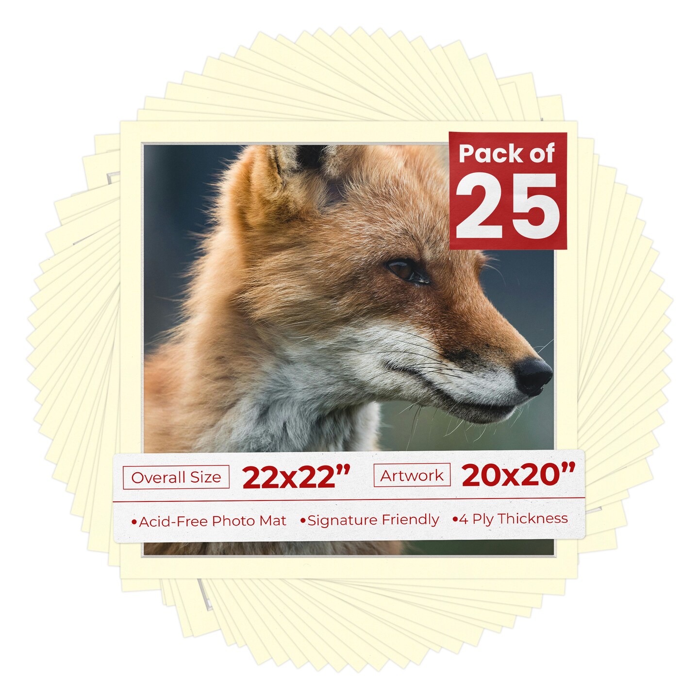 Off White Mat Board for 22x22 Frames - Fits 20x20 Photos