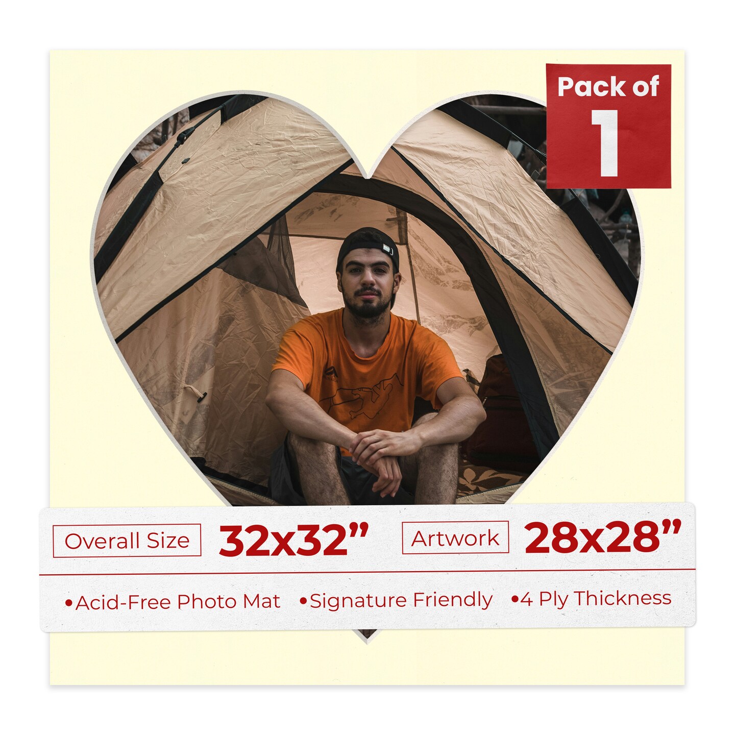 Off White Mat Board for 32x32 Frames - Heart Opening for 28x28 Photos