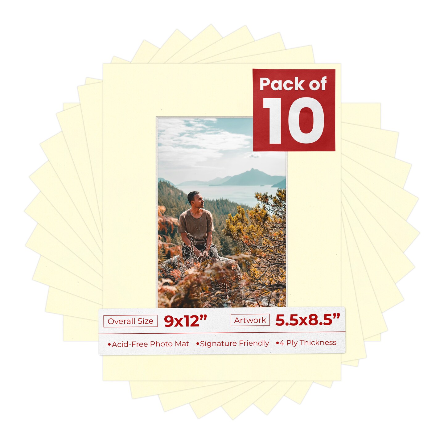 Off White Mat Board for 9x12 Frames - Fits 5.5x8.5 Photos