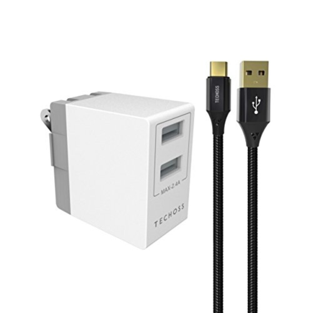 Offex USB Wall Charger 2.4A + 3ft USB Type C Cable 5A Techoss Fast Kit for Galaxy S9 S8 Note 8, Pixel, LG V30 G6 G5, Nintendo