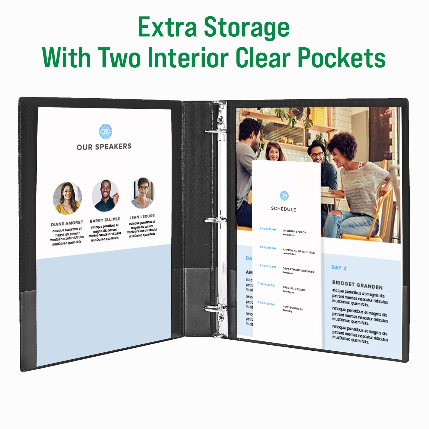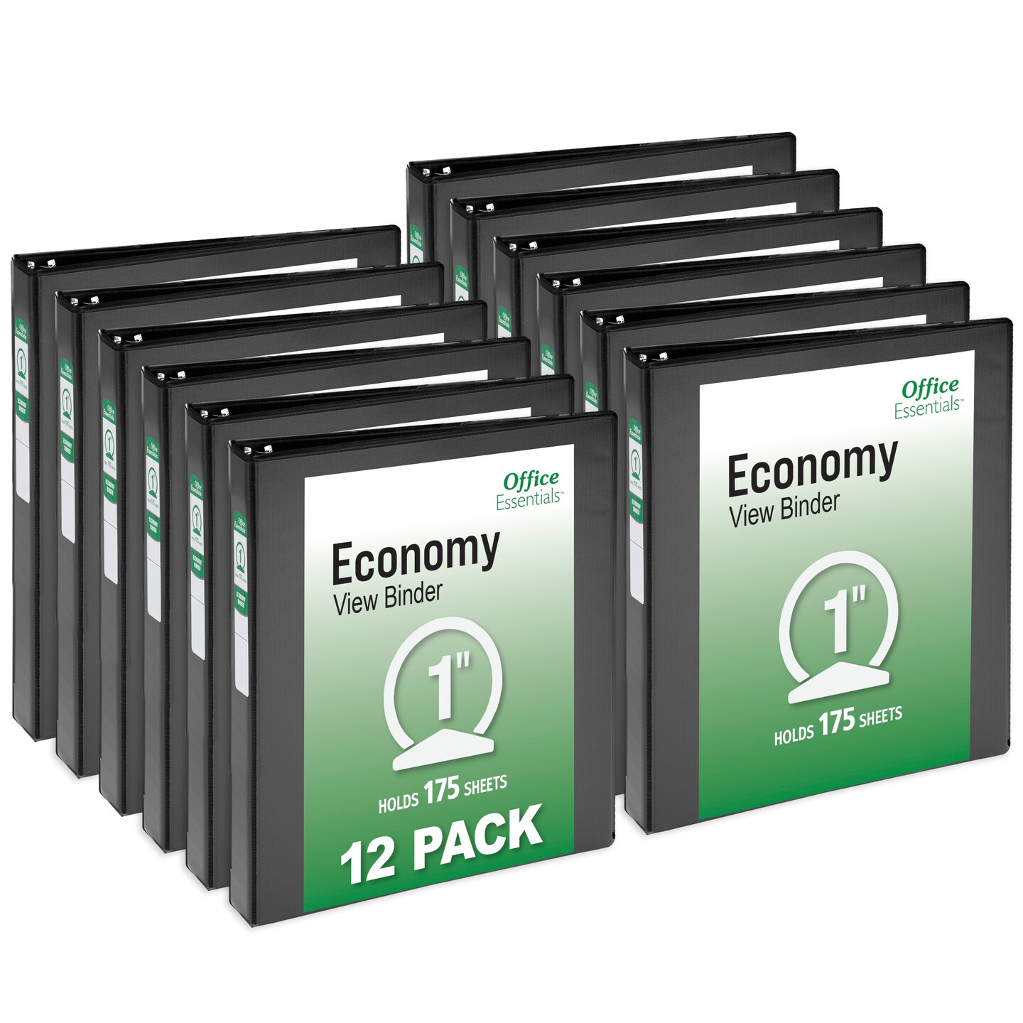 Office Essentials Economy View 3 Ring Binders, 1" Round Rings, 1.4" Spine, 175-Sheet Capacity, Black Binders (12-Pack of 03425)