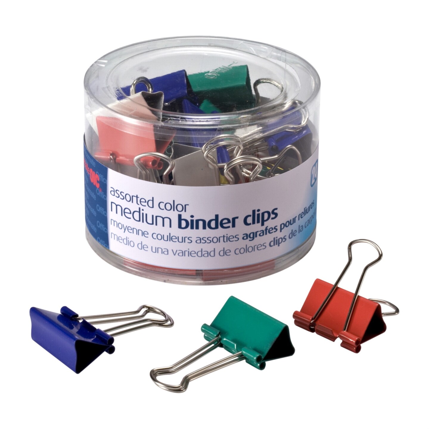 Officemate Binder Clips, Medium, 5/8 Inch Capacity, Assorted Colors, Pack of 24