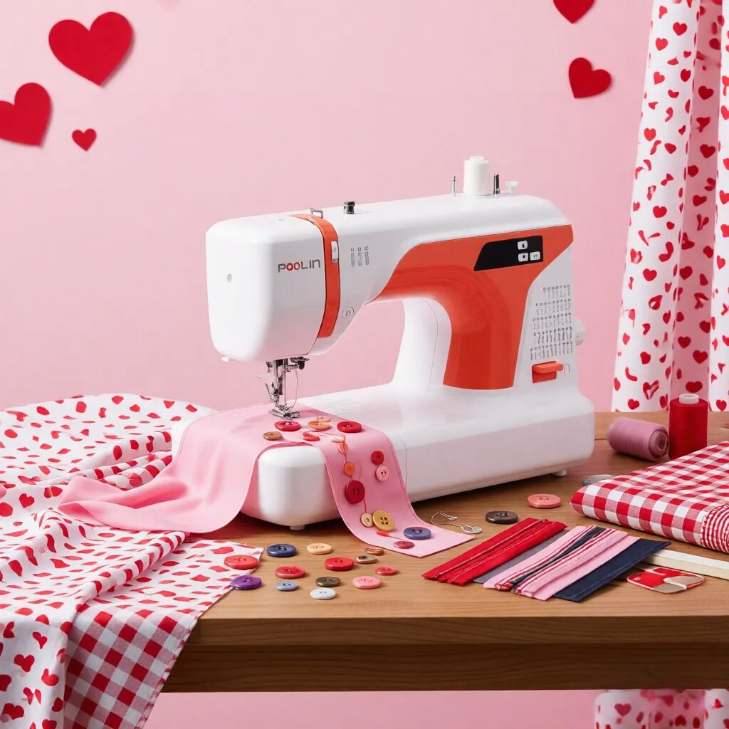Official Poolin EOC01-RE Computerized Sewing Machine with 107 Stitches & 8 Buttonhole Styles Auto Needle Threader & Accessories for Quilting & Sewing Project Holiday Gift