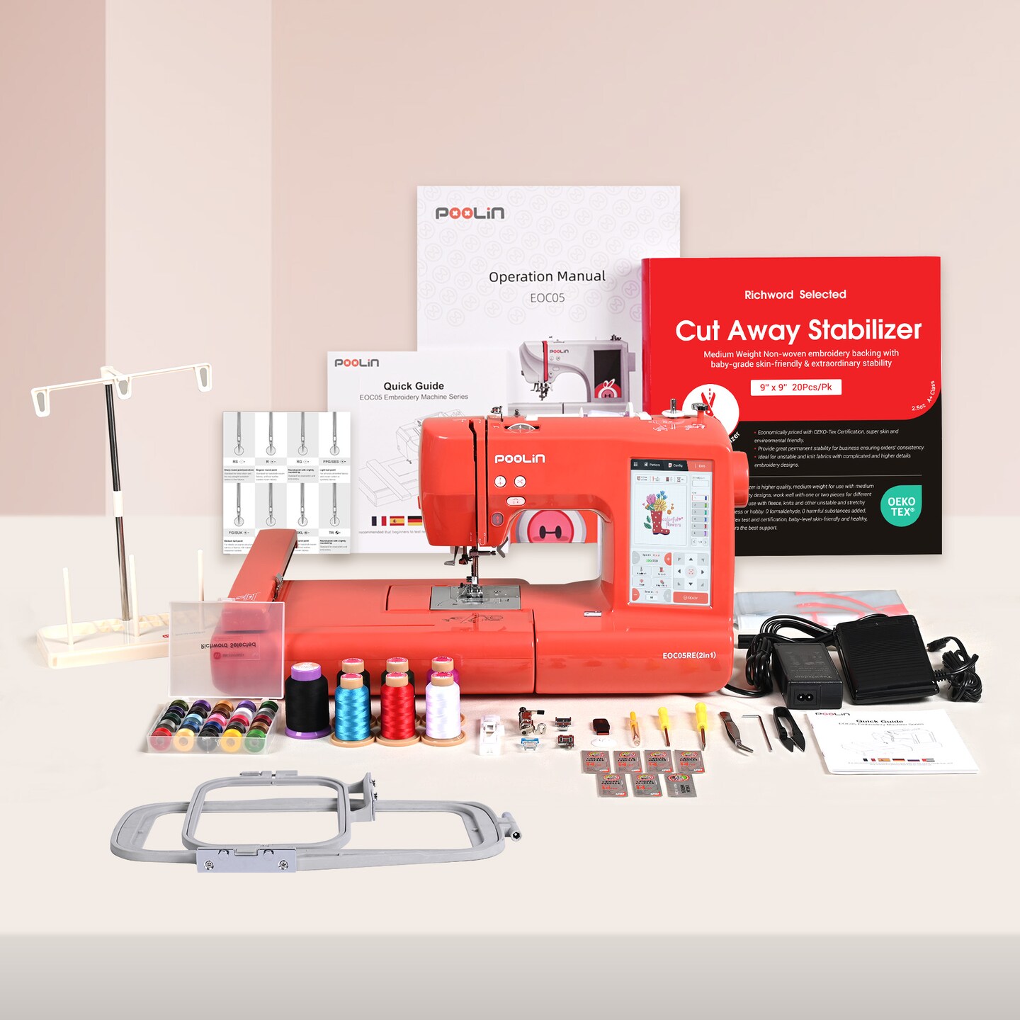Official POOLIN EOC05RE(2in1) Sewing & Embroidery Machine Computerized 9.2x4in Large Area with 7in Big LCD Touchscreen Wifi Availabable with Starter Kit 207 stitches &156 built-in patterns for Business and Holiday Gift