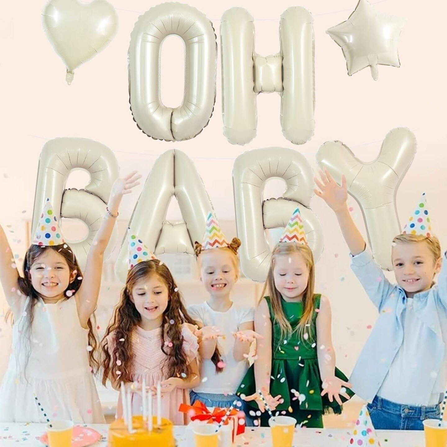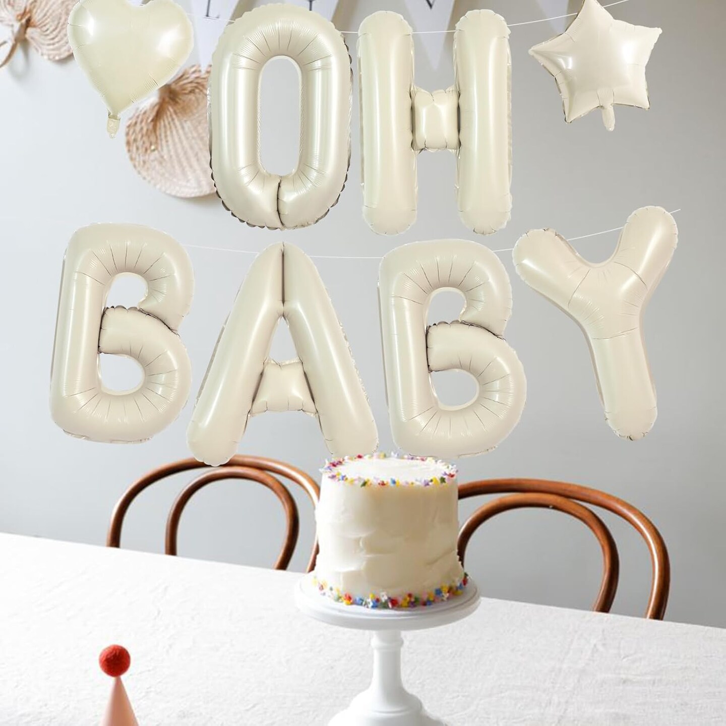 OH BABY Balloon,40 Inch Cream White Oh Baby Foil Letter Balloons,Large Baby Shower Balloon Banners for Gender Reveal Party Decoration Baby Birthdays Party Decoration