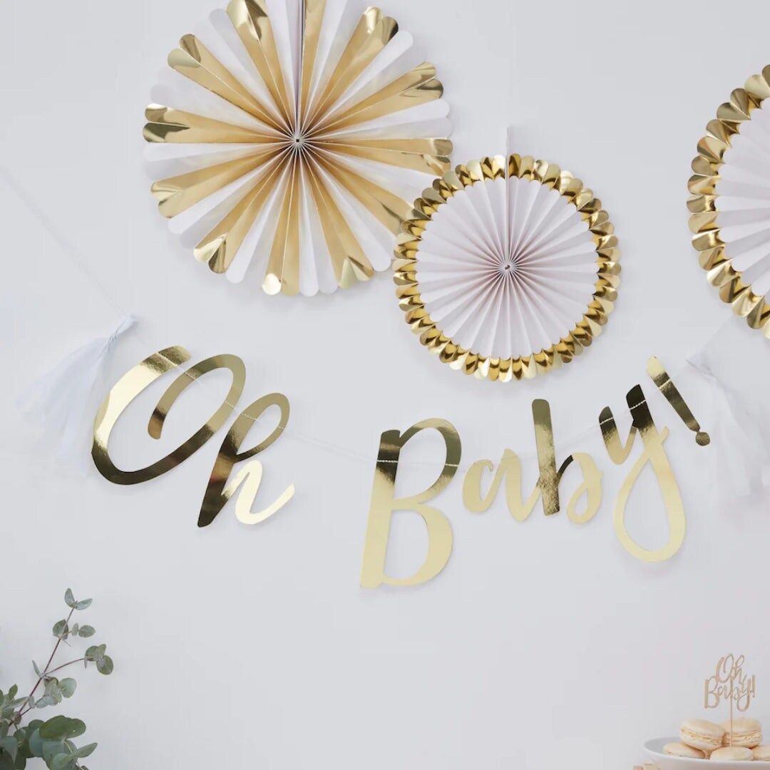 Oh Baby Gold Script Garland Banner – Elegant Baby Shower Party Decoration, 6.5x6.5in, Gender Reveal Décor
