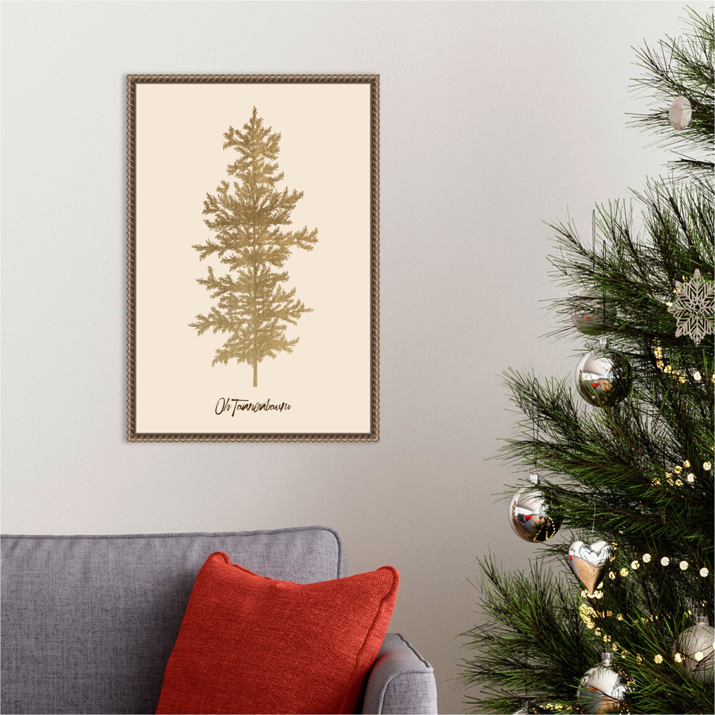 Oh Tanenbaum (gold) by Kubistika Framed Canvas Wall Art