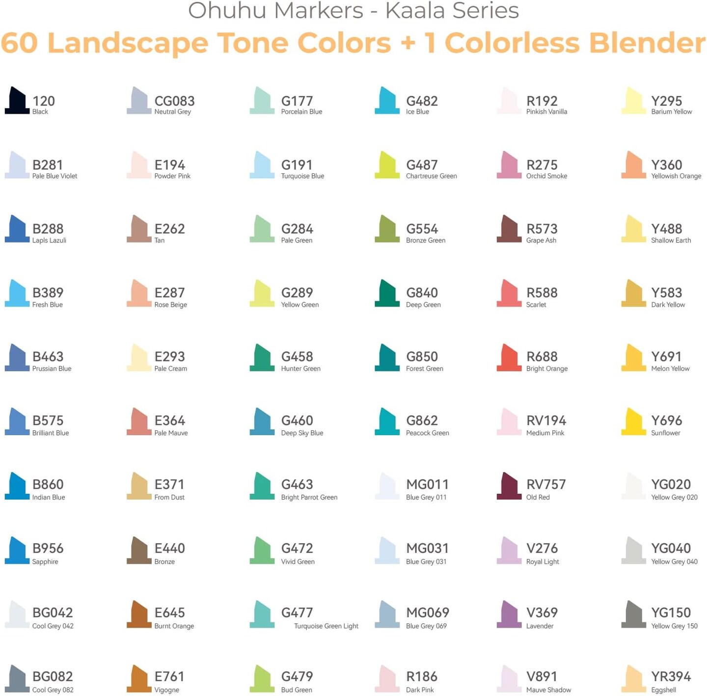 Ohuhu Alcohol Markers, 60 Colors Kaala Markers, Slim Broad and Fine Double Tipped, Art Marker Set for Artists Adults Coloring Drawing Cartoon Anime Comic/ Landscape Sketch