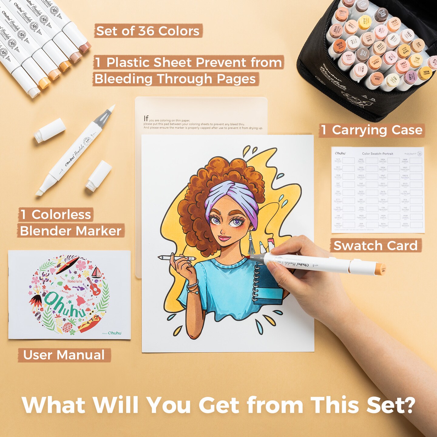 Ohuhu Alcohol Markers Skin Tone Brush Tip -Skin Color Art Marker Set for Artist Adults Coloring Illustration -36 Portrait Colors - Refillable Ink - Brush & Chisel/ Brush & Fine Dual Tips- Honolulu/ Honolulu B of Ohuhu Markers