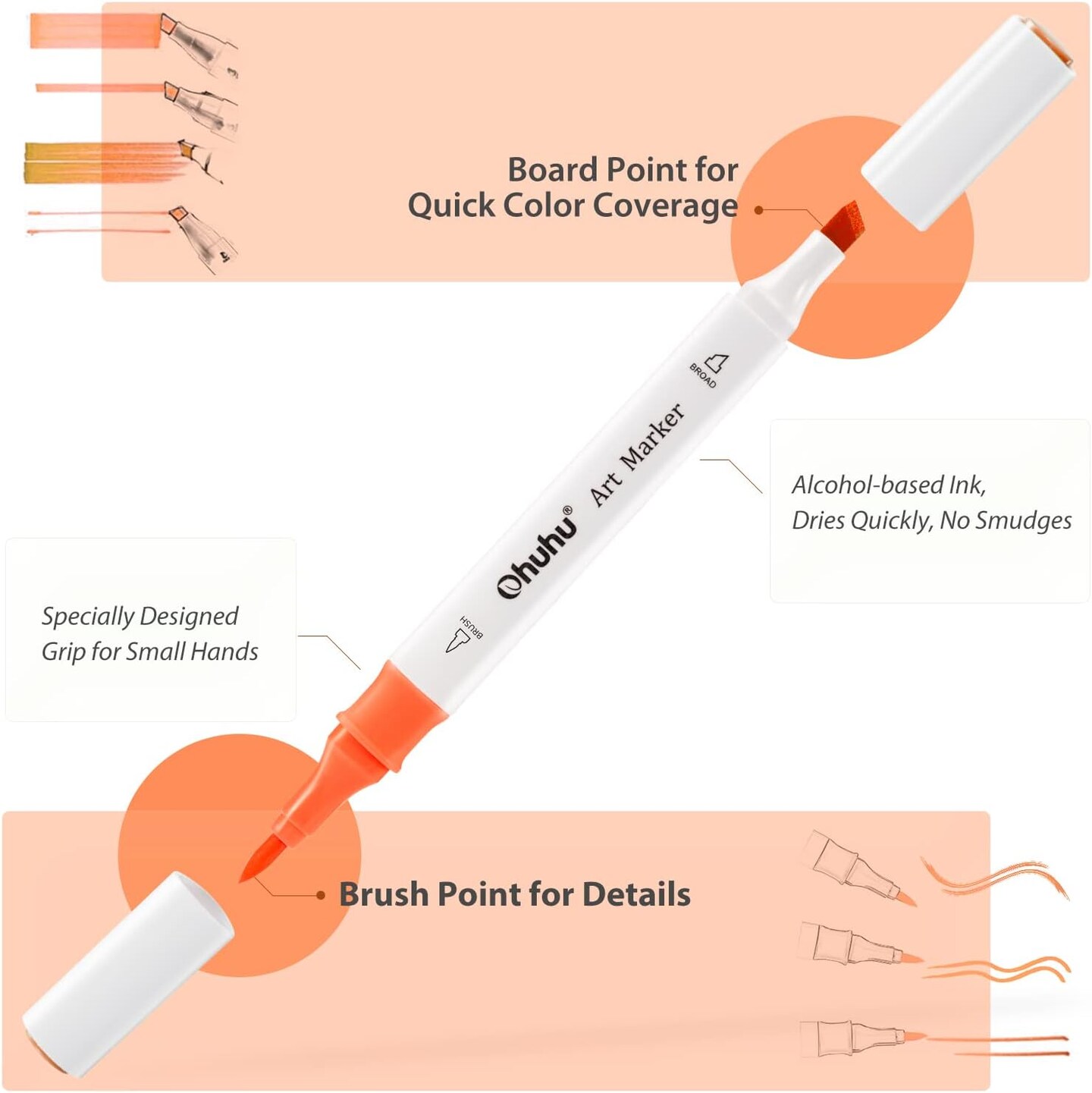Ohuhu Brush Markers Alcohol Based: Double Tipped Art Sketch Drawing Marker Set for Kids Artists Adults Coloring Landscape Architectural Design - Brush Chisel Dual Tip - 48-color w/Marker Storage Case