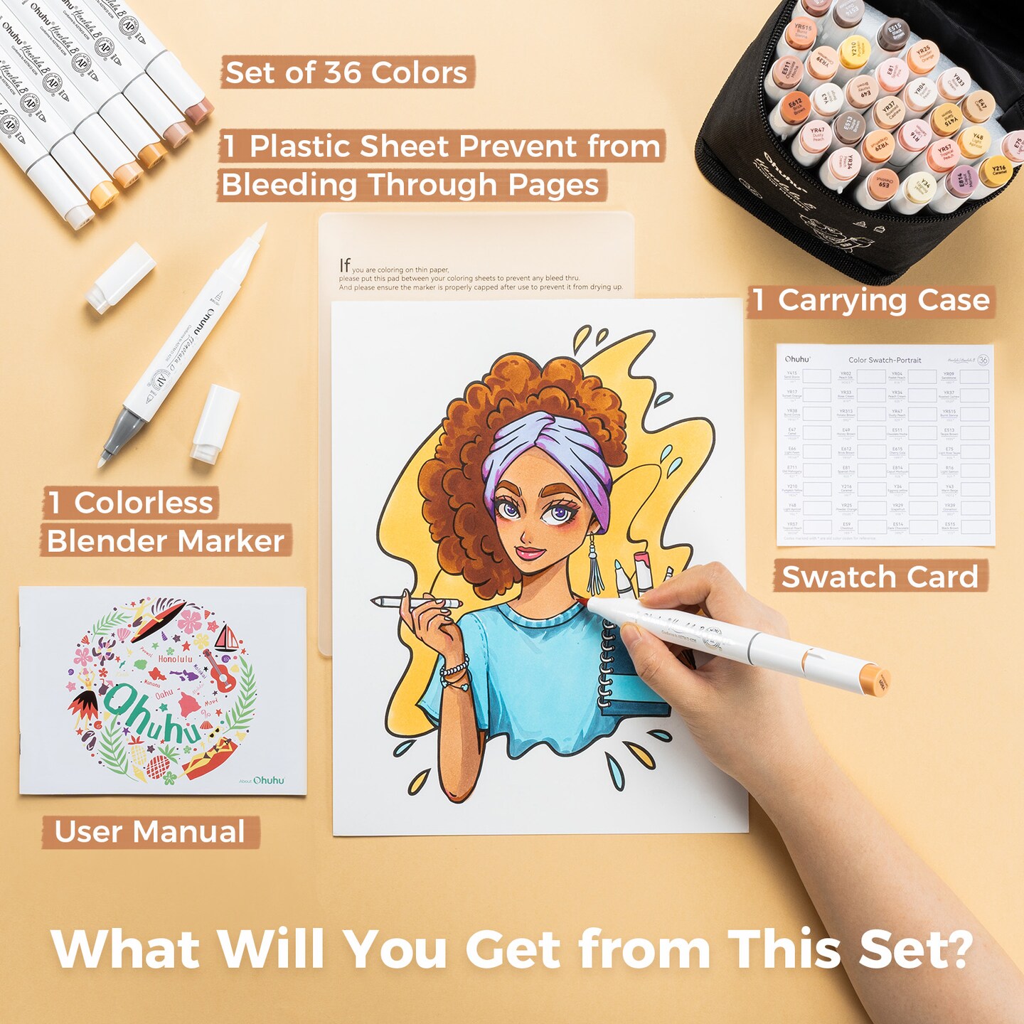 Ohuhu Brush Markers Skin Tone - 36 Portrait Skin Colors Double Tipped Art Marker Set for Artist Adults Coloring Illustration- Refillable- Brush & Fine Dual Tips- Honolulu B of Ohuhu Markers