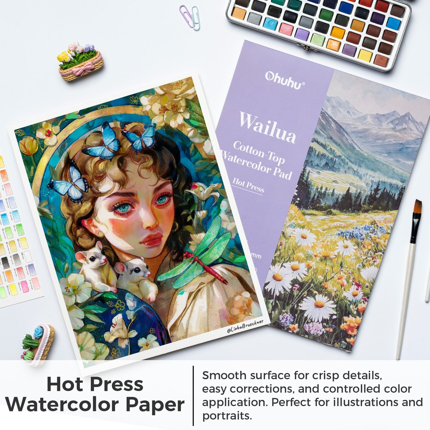 Ohuhu Cotton-Top Watercolor Paper Pad: 9"x12" Cold Press/Hot Press Paper - 140 lb/300 GSM Heavyweight White Paper - Water Color Paper for Watercolor Gouache Ink Acrylic Professional Artist