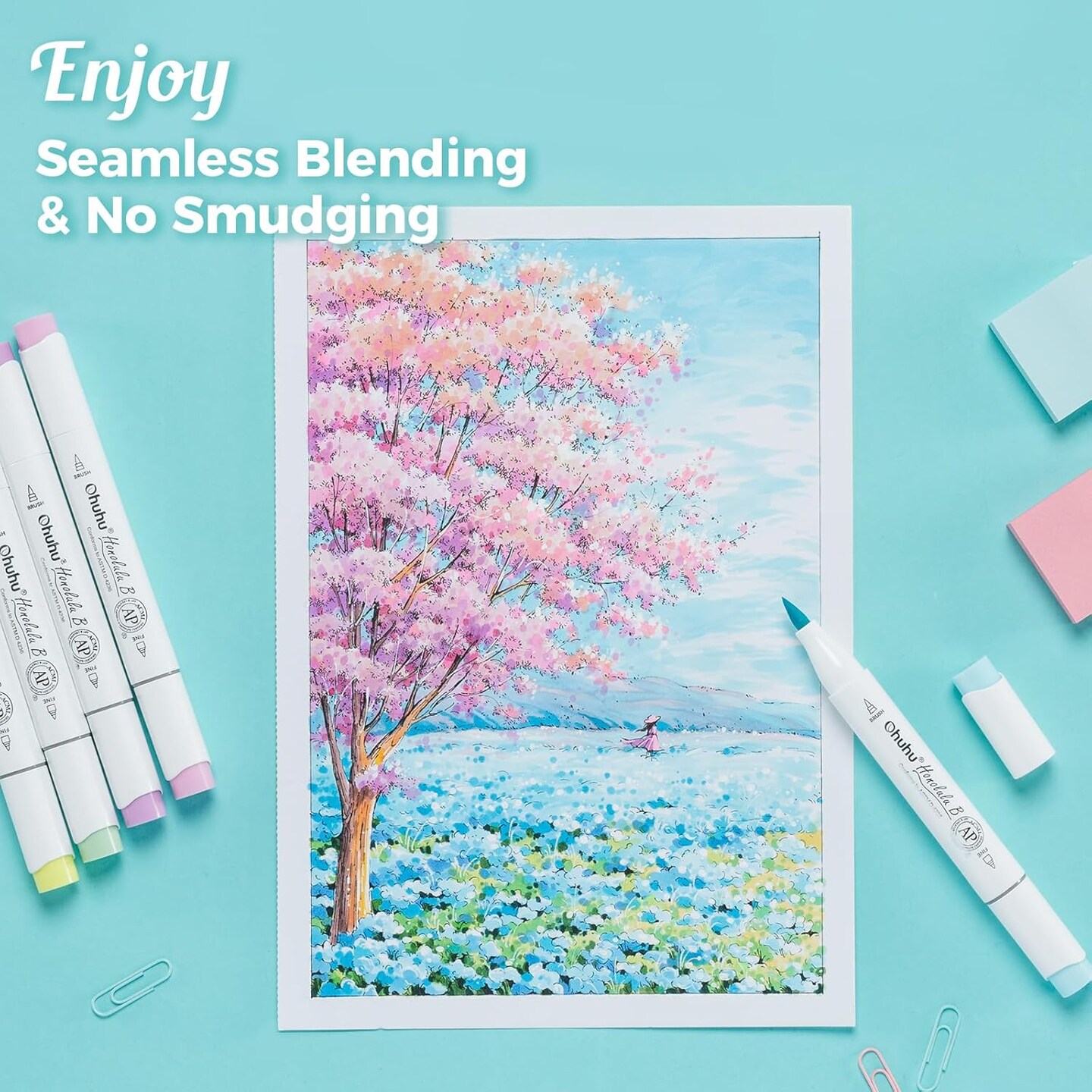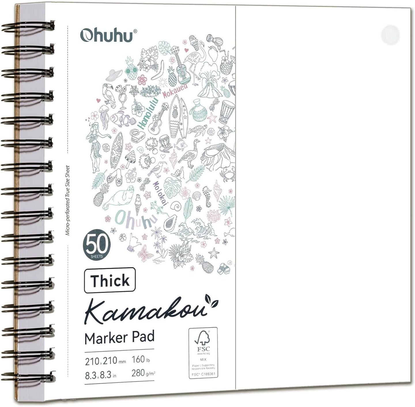 Ohuhu Double-Sided Bleedproof Marker Pad - 8.3"x8.3" Square Paper Size - 160 lb/280 gsm Heavyweight Smooth Drawing Paper - 50 Sheets/100 Pages - Spiral-Bound Sketchbook for Alcohol Markers