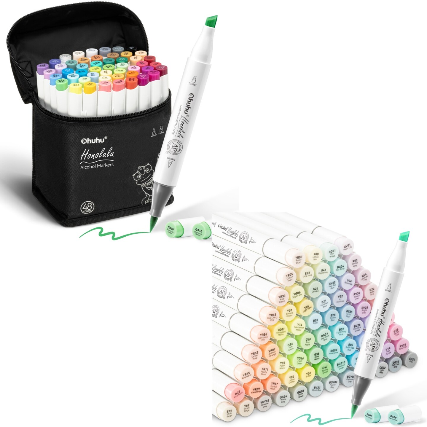 Ohuhu Honolulu 48 Colors + 96 Pastel Colors Alcohol-Based Markers (Sweetness & Blossoming Series), Brush & Chisel, Dual Tips Art Markers Bundle
