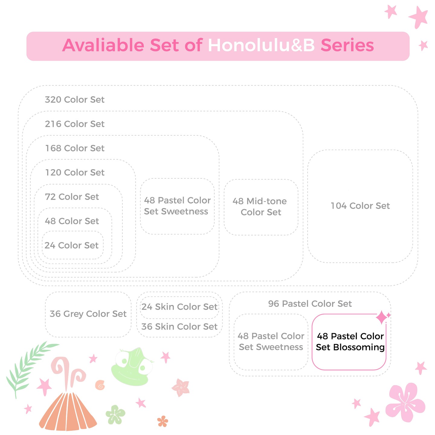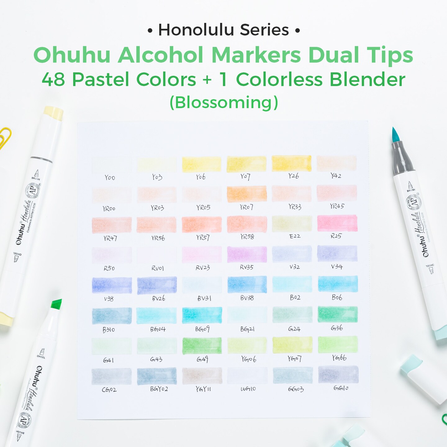 Ohuhu Honolulu 48/96 Pastel Colors Markers Alcohol Based - Brush & Chisel Dual Tips - Sweetness & Blossoming Color Sets