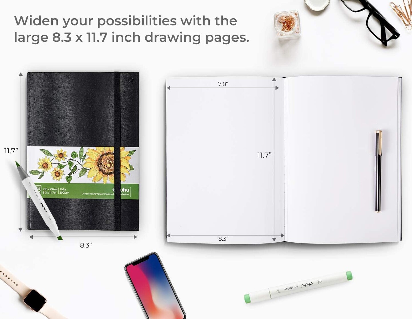 Ohuhu Sketchbook Marker Paper Pad 78 Sheets/156 Pages, Art Sketch Book Drawing Papers 120 LB/200 GSM Hardcover Sketching Books for Alcohol Markers Heavyweight Sketchpad Christmas Gift