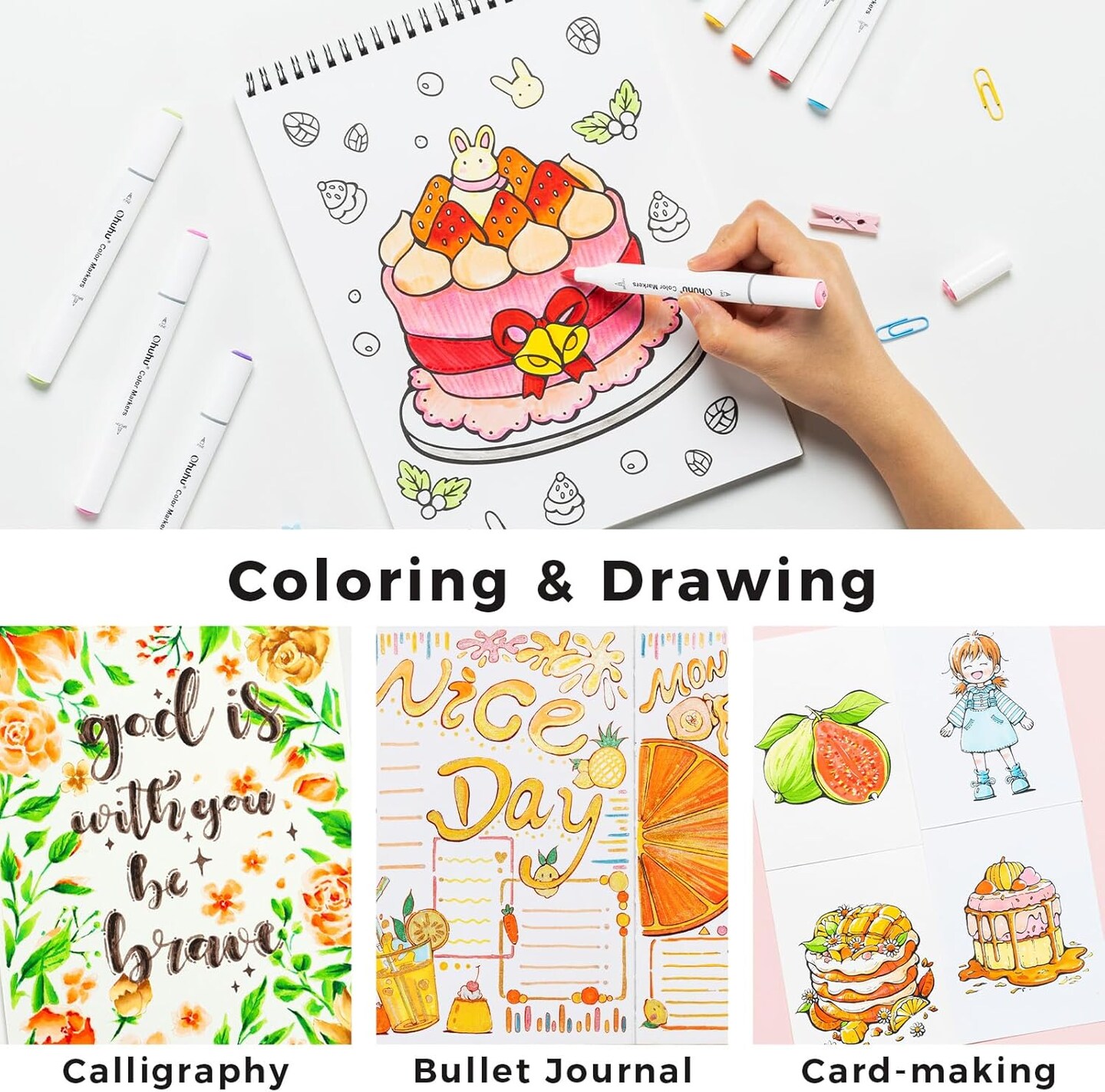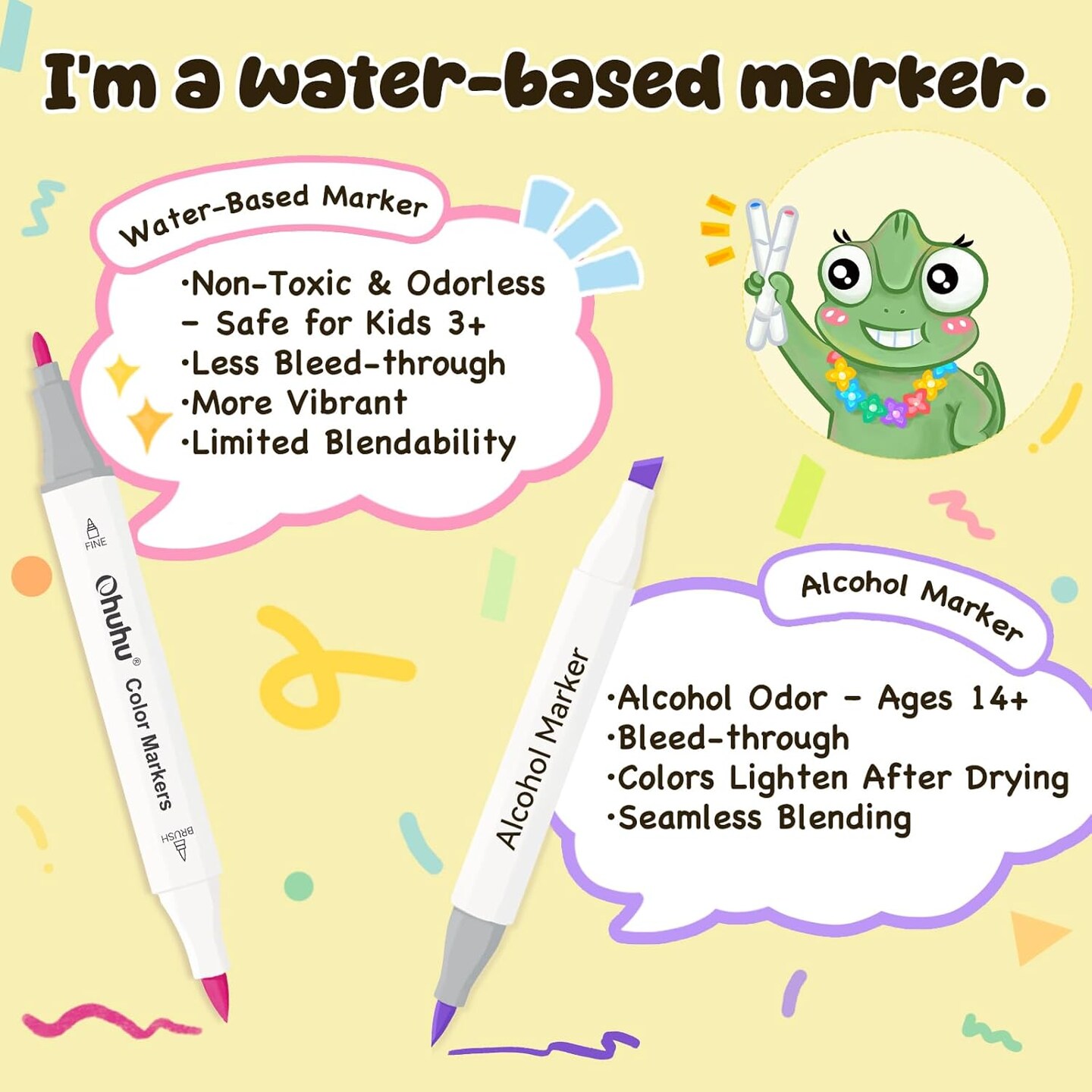 Ohuhu Water Based Markers for Adult Coloring Books - 60 Colors No Bleeding Water-based Coloring Markers - Drawing Pens Art Markers for Kids Adults Beginners Lettering Journaling - Dual Tips Brush & Chisel/ Brush & Fine