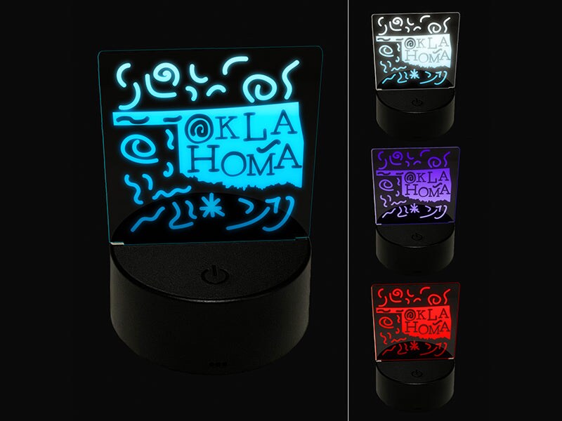 Oklahoma State with Text Swirls 3D Illusion LED Night Light Sign Nightstand Desk Lamp