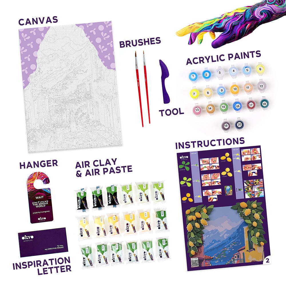 OKTO | Air Dry Clay Paint by Numbers & Modeling Kit for Adults | Lemon Weekend | 11.8x15.7 in