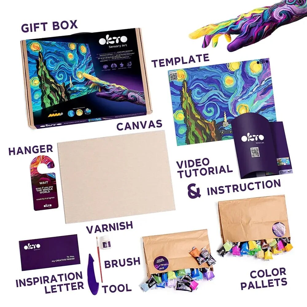 OKTO | DIY 3D Creative Air Dry Clay | 3D Painting natural canvas set | Famous Masterpieces ”Starry night” | 11.8x15.7 inch