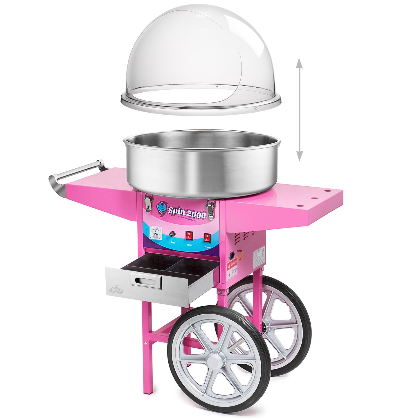 Olde Midway Commercial Quality Cotton Candy Machine Cart with Bubble Shield, SPIN 2000 Electric Candy Floss Maker