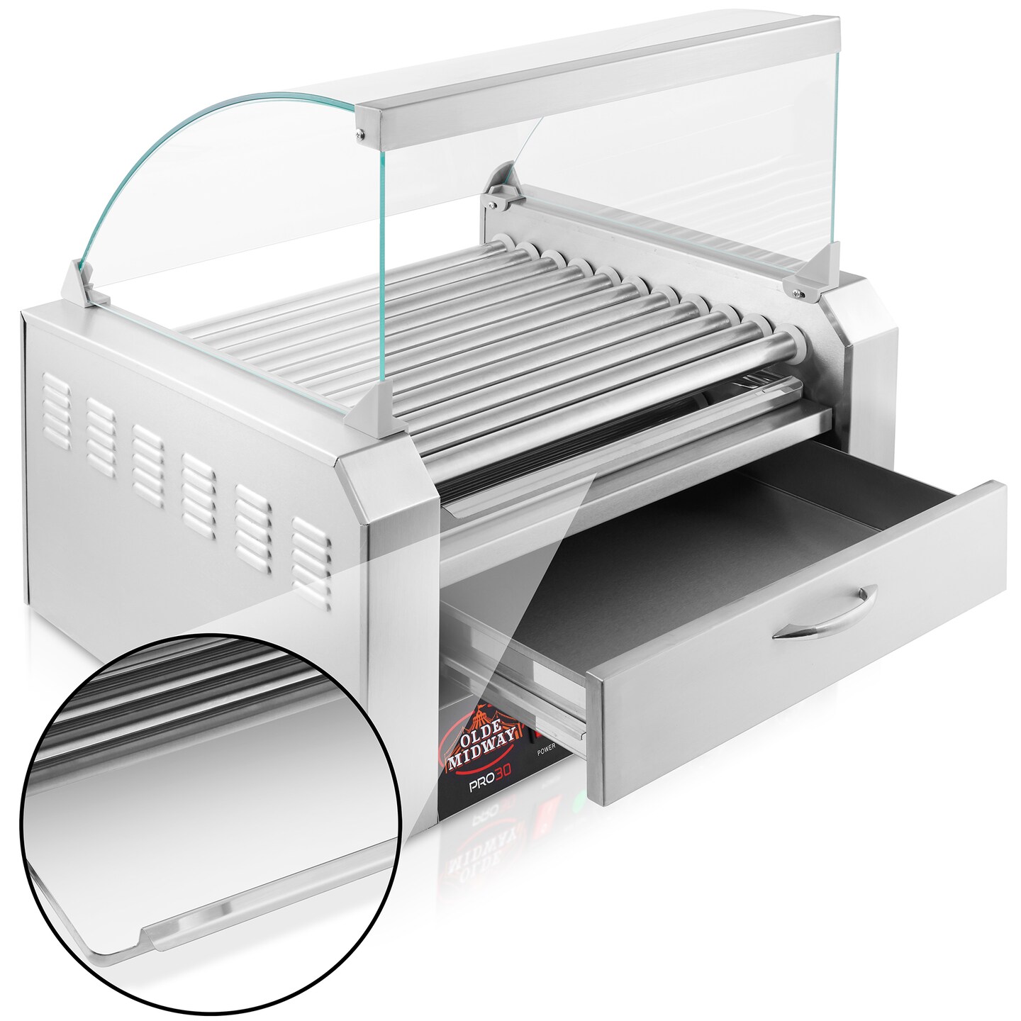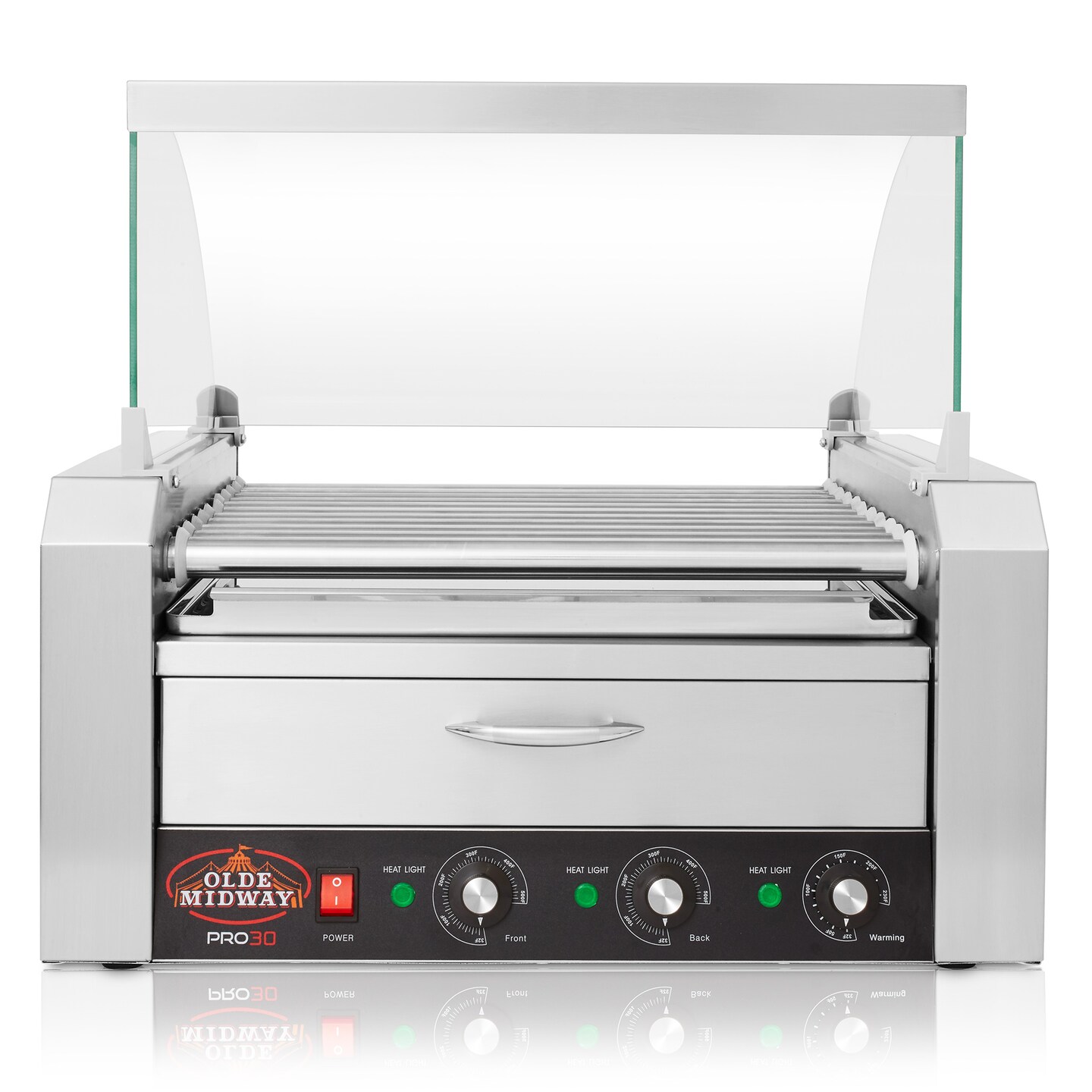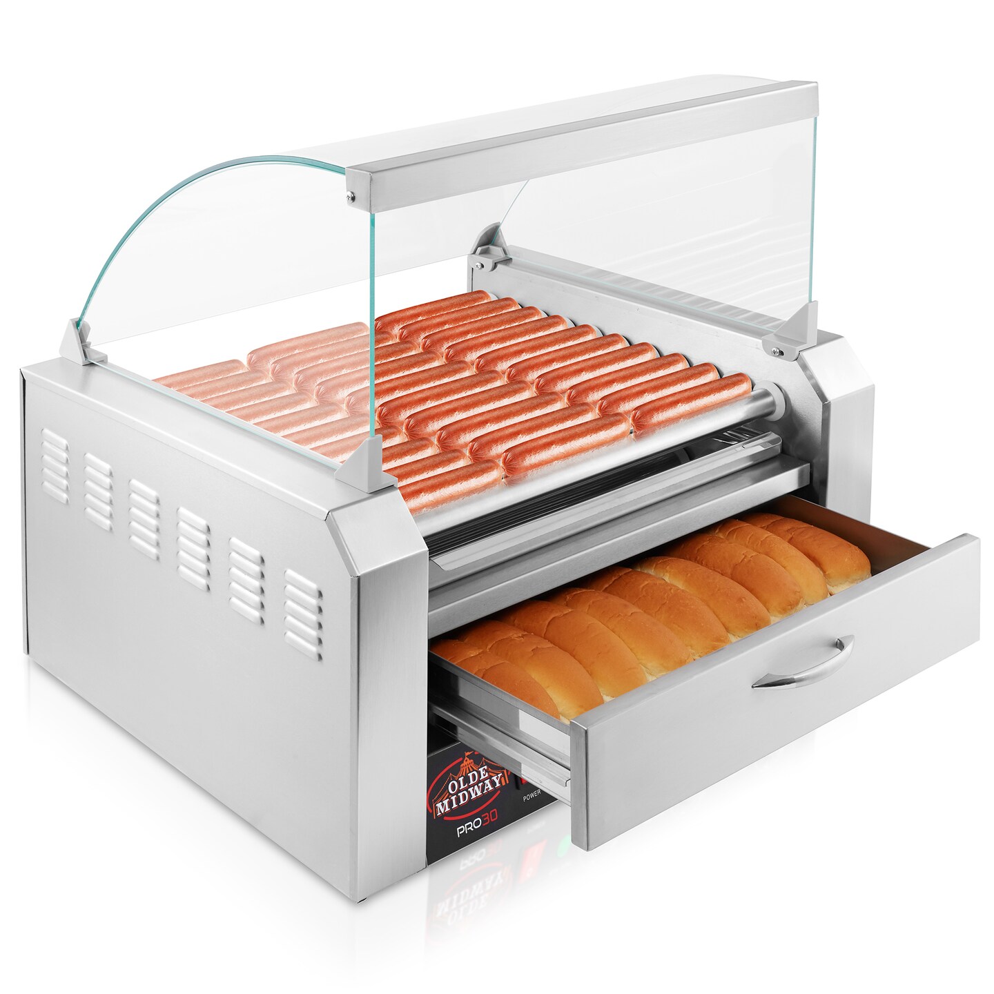 Olde Midway Electric Hot Dog Roller Grill Cooker Machines with Bun Warming Drawer - Commercial Grade