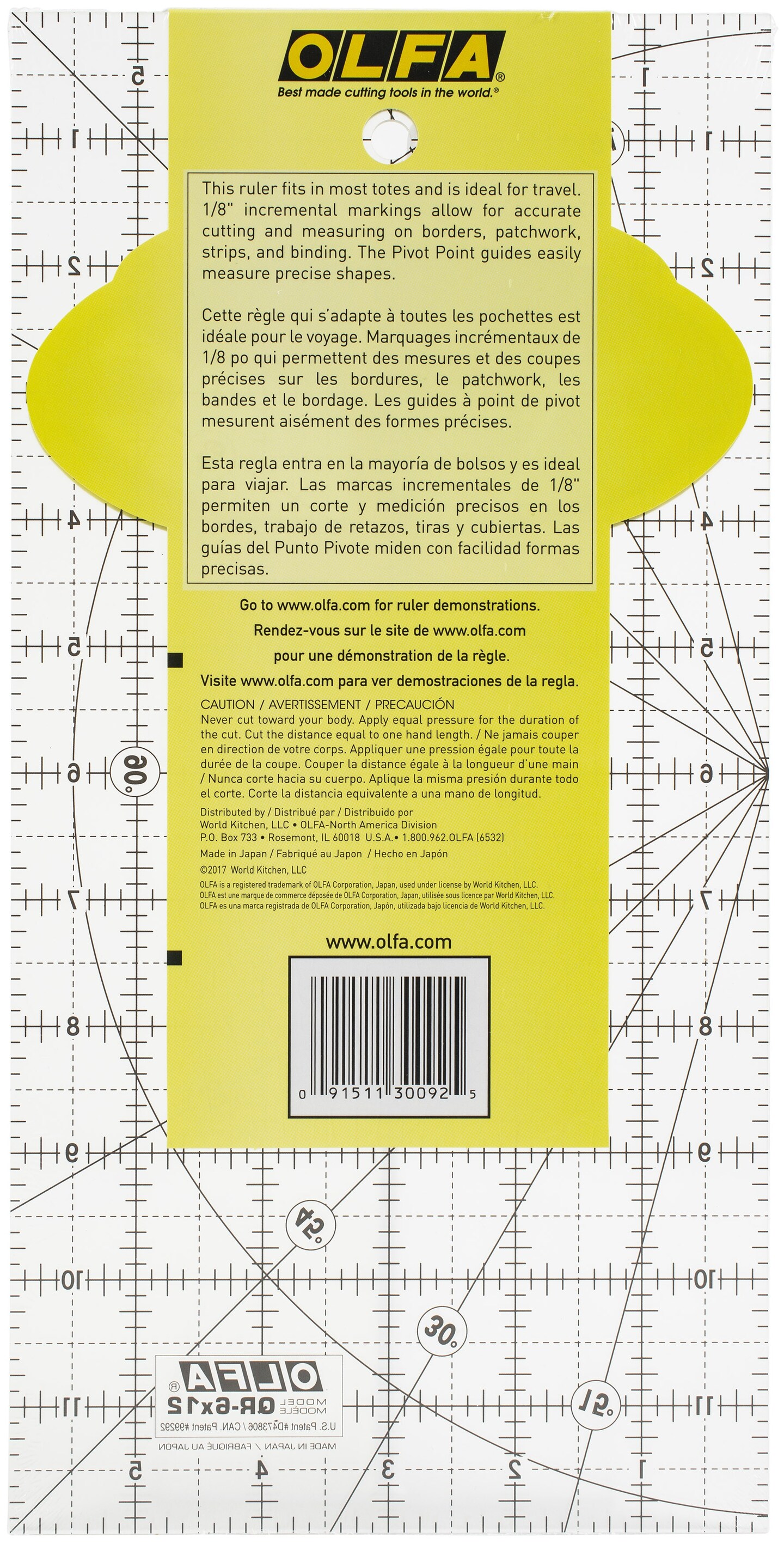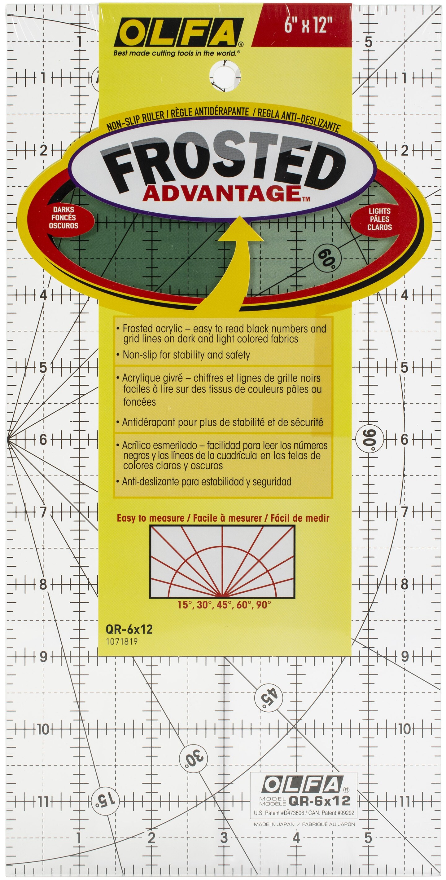 OLFA Frosted Advantage Non-Slip Ruler "The Traveler"-6"X12"
