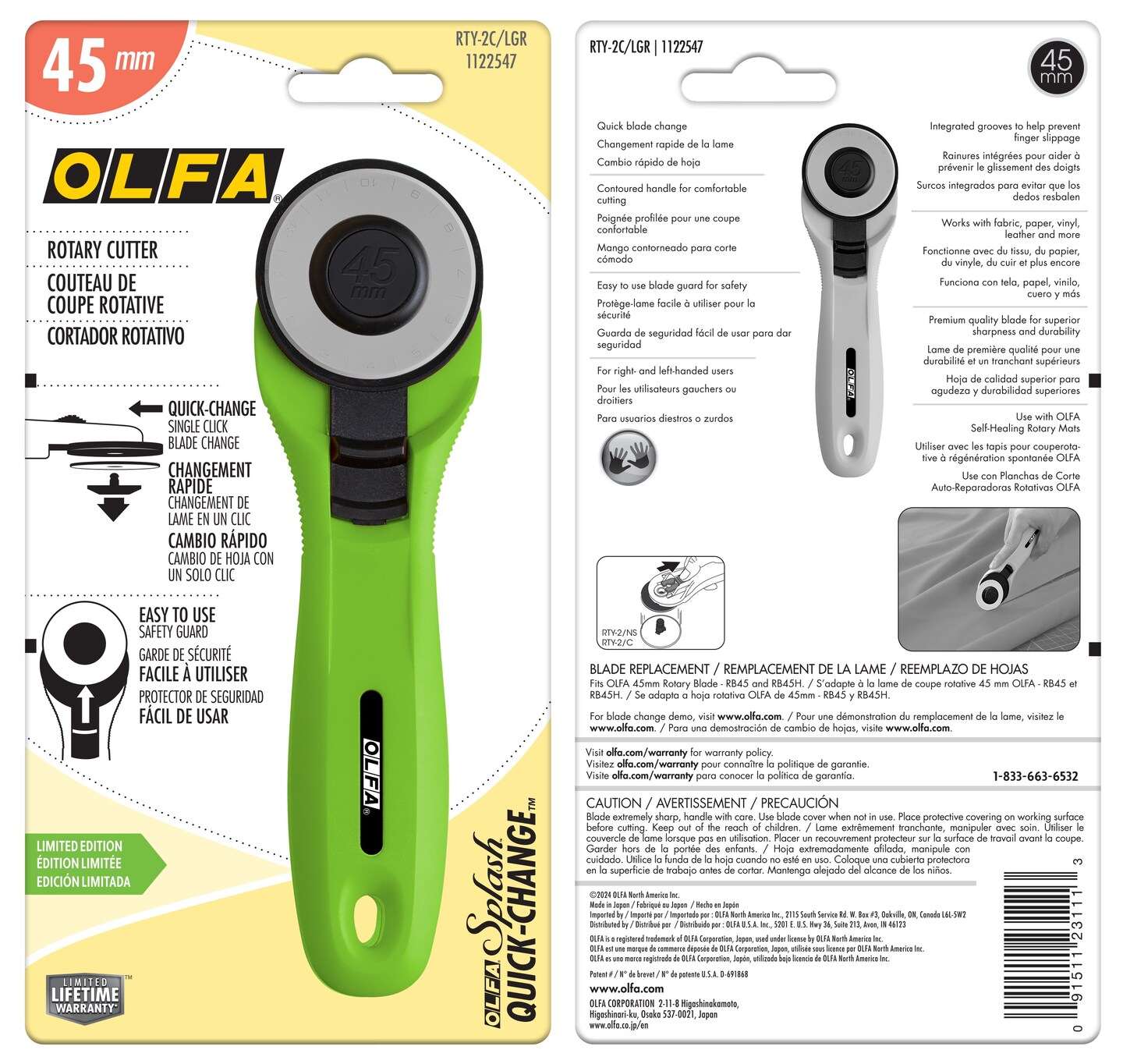 OLFA Quick-Change Rotary Cutter 45mm-Lime Green