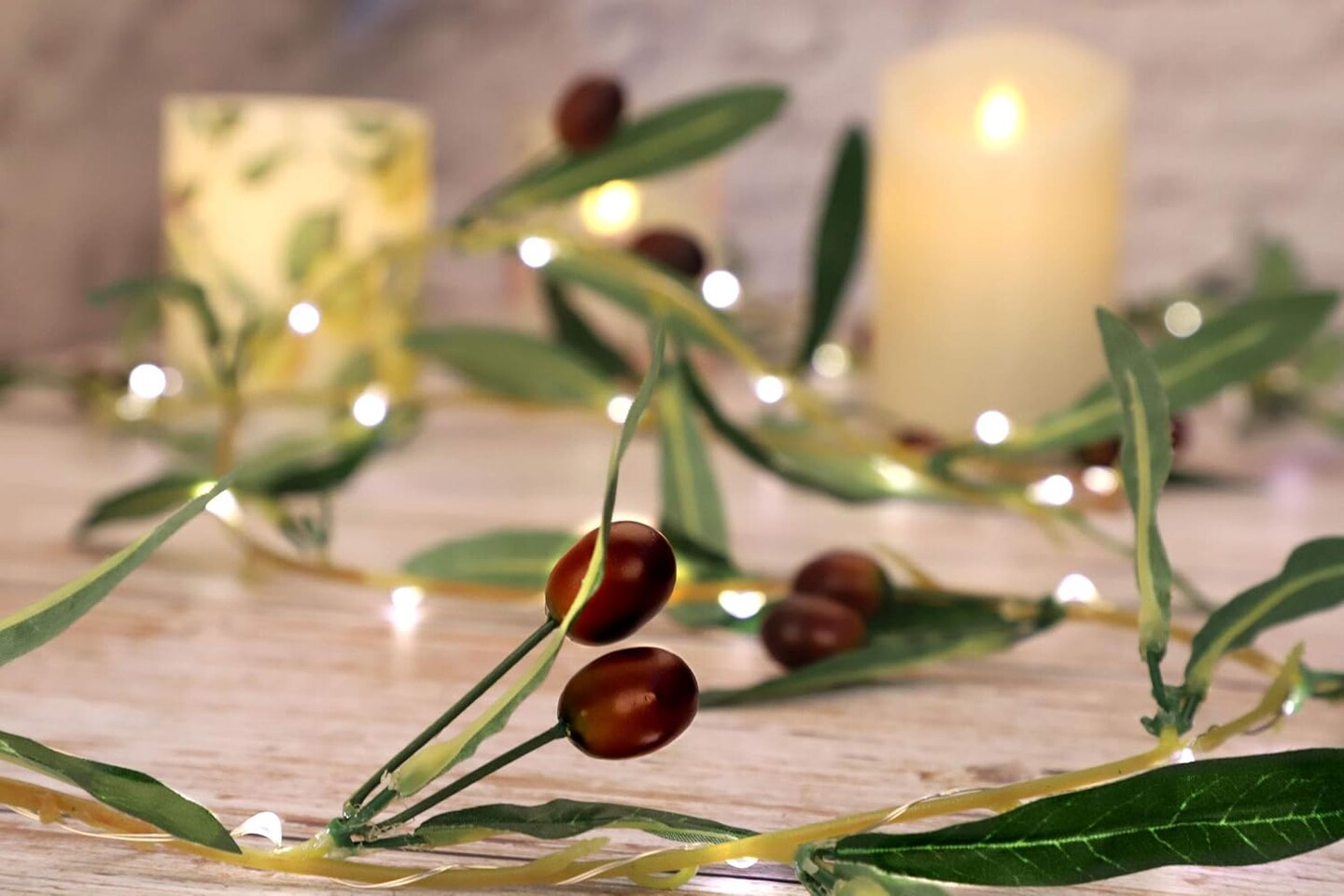 Olive Branch Christmas Garland String Lights 10FT 40 White LED Lighted