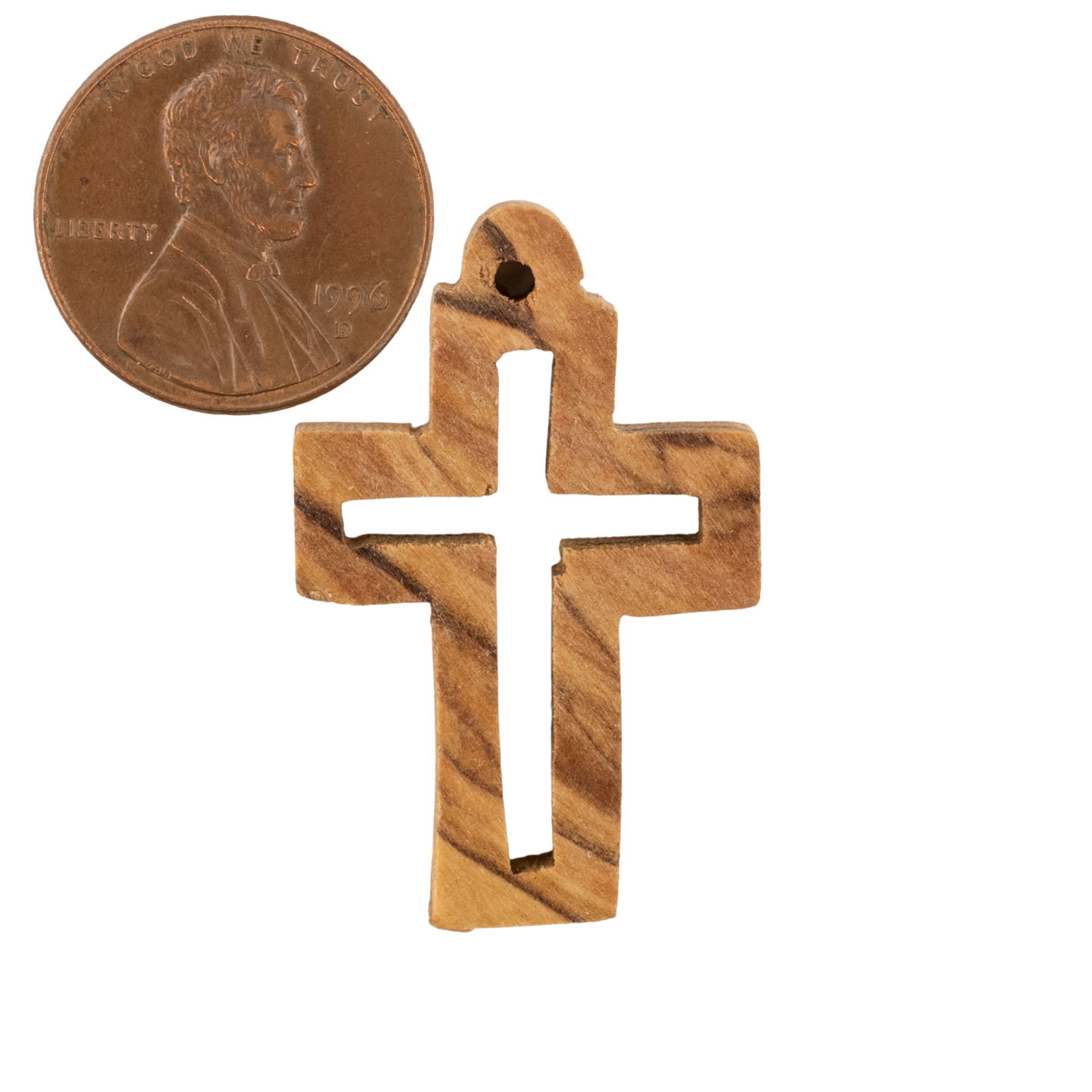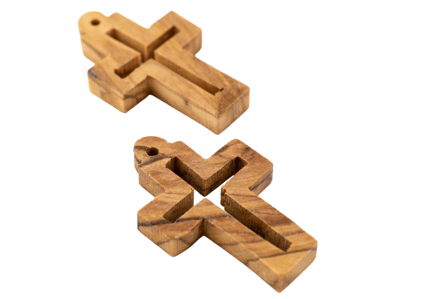 Olive Wood Cross Pendant from Bethlehem: Artisan Handcrafted Christian Necklace, 34x22mm